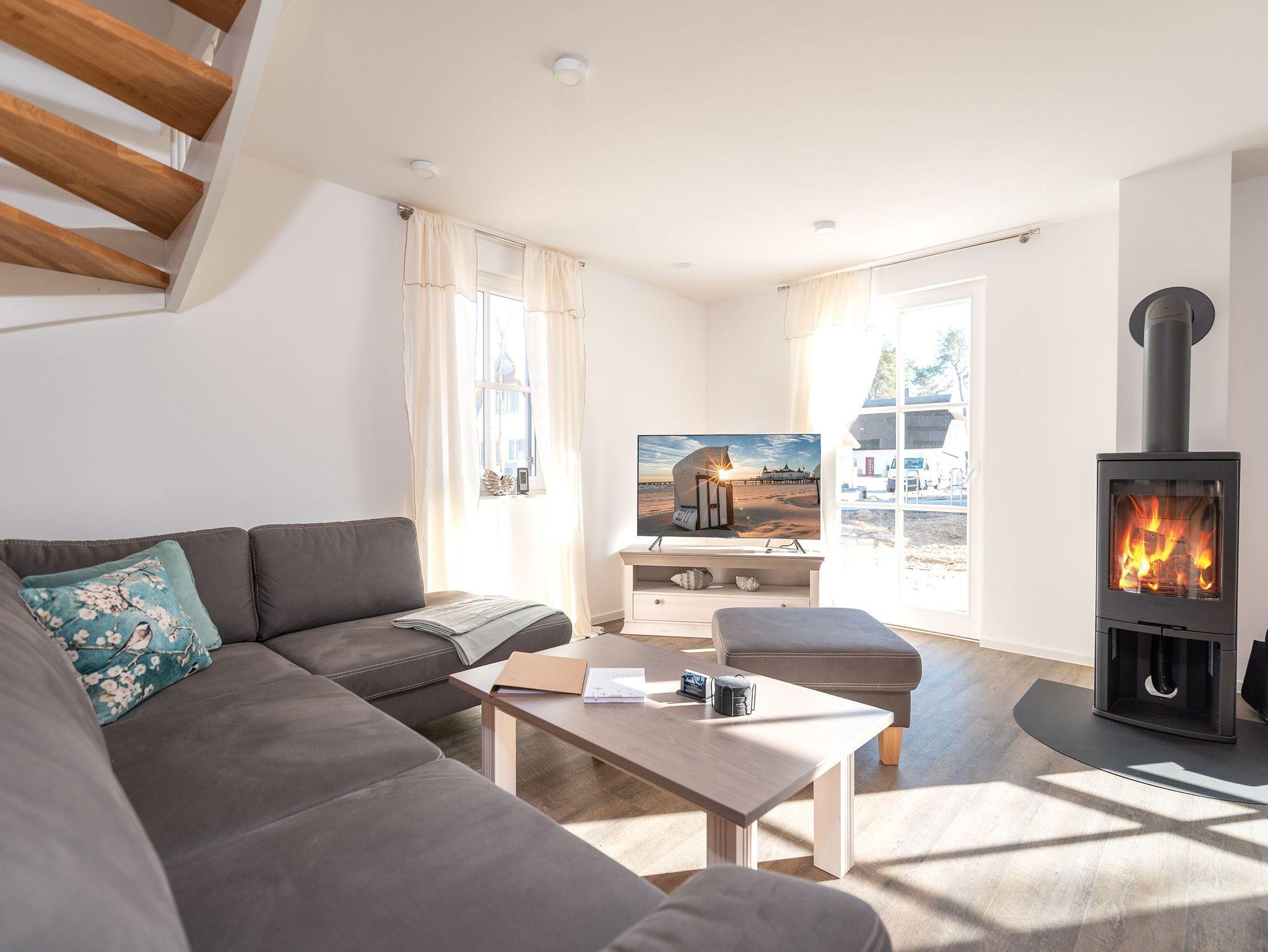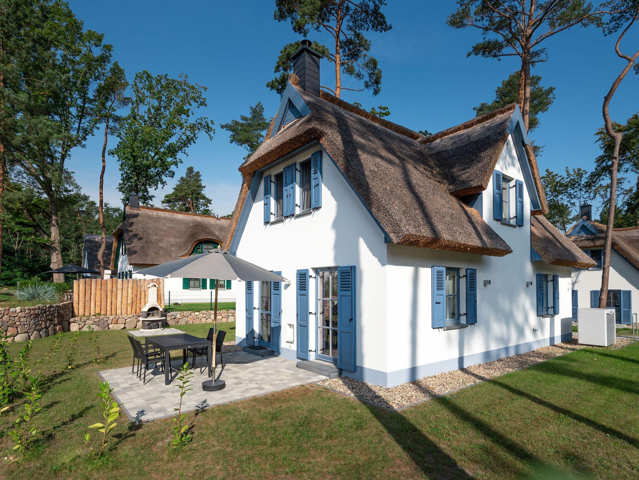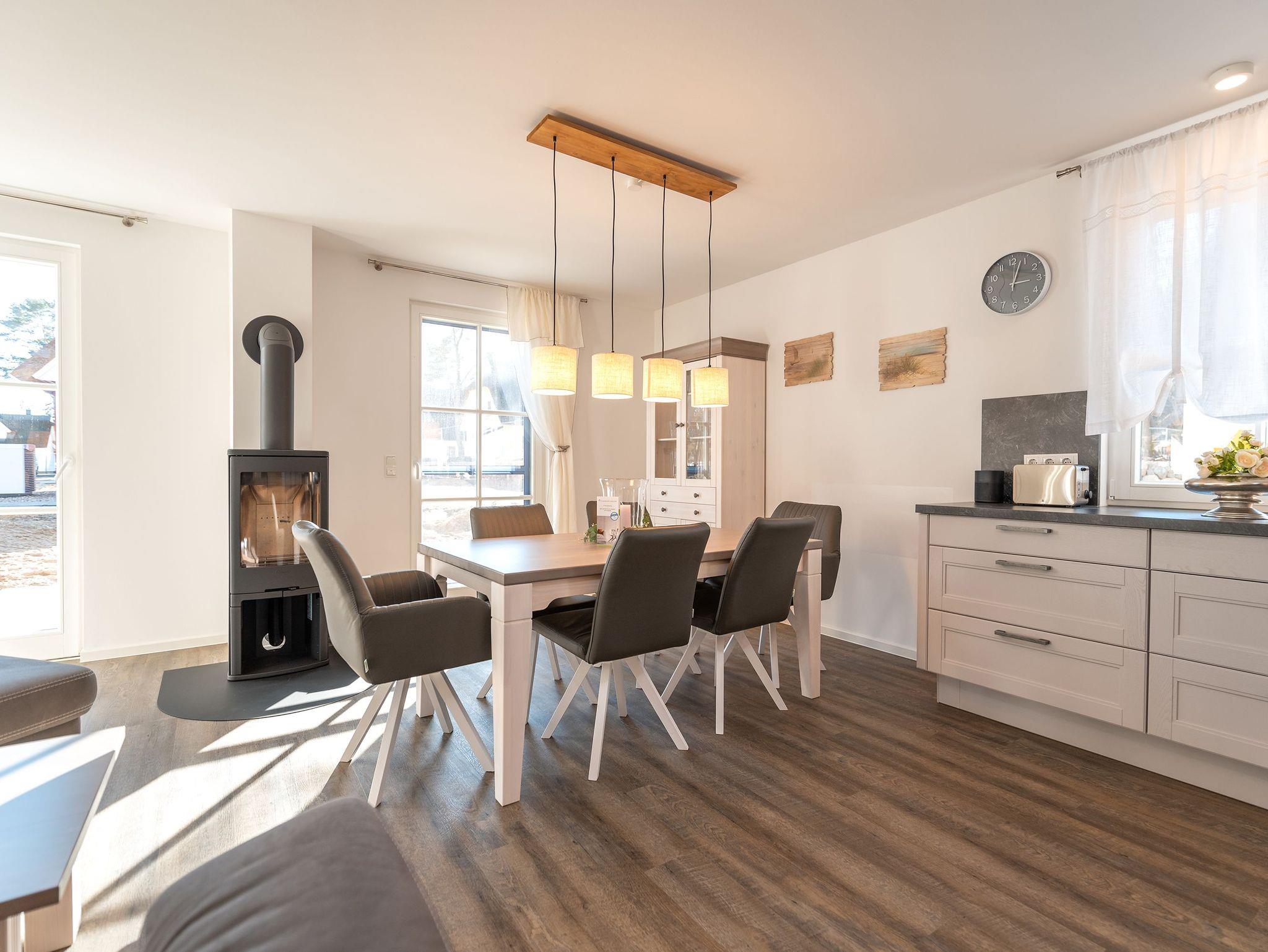 Das neu erbaute Ferienhaus Maria inmitten eines Kiefernwaldes bietet Komfort, Sauna, Kamin und Nähe zu den Stränden der Kaiserbäder.