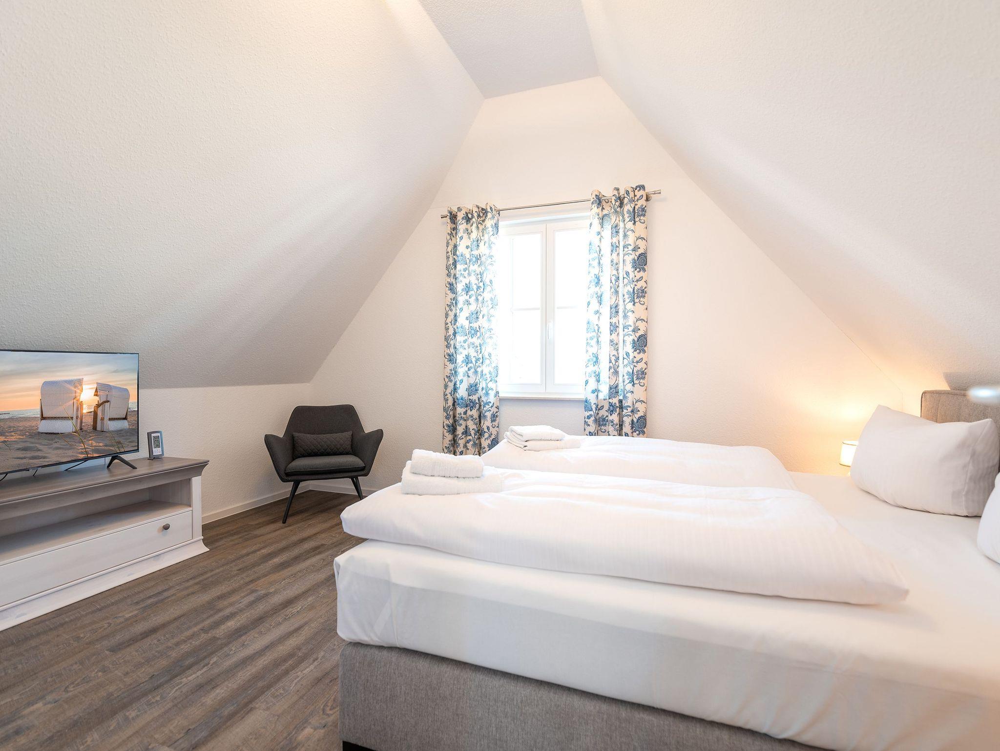 • Zwei Schlafzimmer bereiten mit hochwertigen Betten einem Boxspring-Doppelbett im einen und zwei Boxspring-Einzelbetten im anderen Zimmer erholsame Nächte.