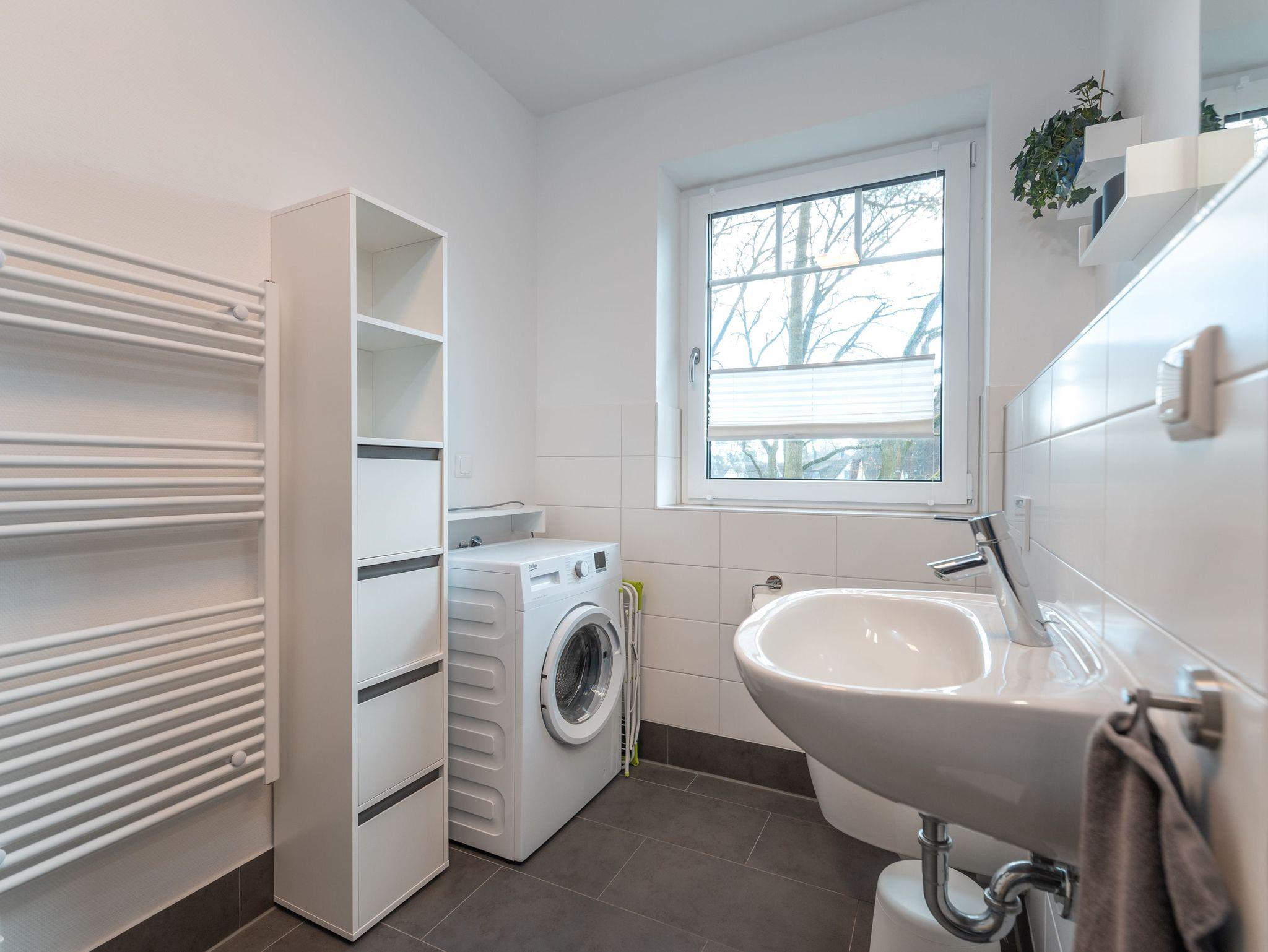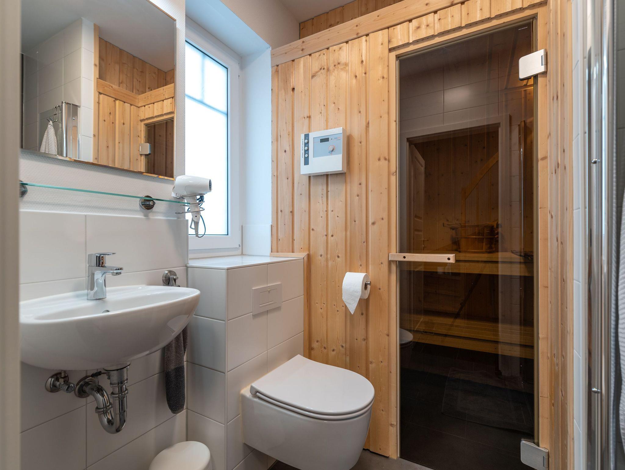 Beide Badezimmer sind mit Duschen ausgestattet, so dass der morgendliche Ansturm sich in Grenzen hält. Die Sauna wärmt nach ausgedehnten Spaziergängen im Winter Körper und Seele und hält Ihr Immunsystem auch im Sommer auf Trab. Zu frischer Wäsche verhilft die Waschmaschine.