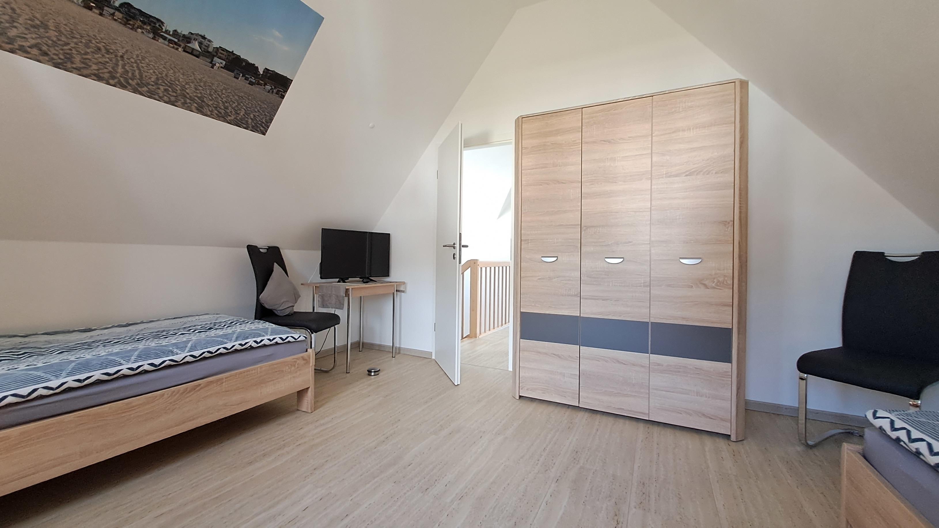 - Das zweite ist mit 2 Einzelbetten (90x200 cm), Kleiderschrank und Flachbild-TV