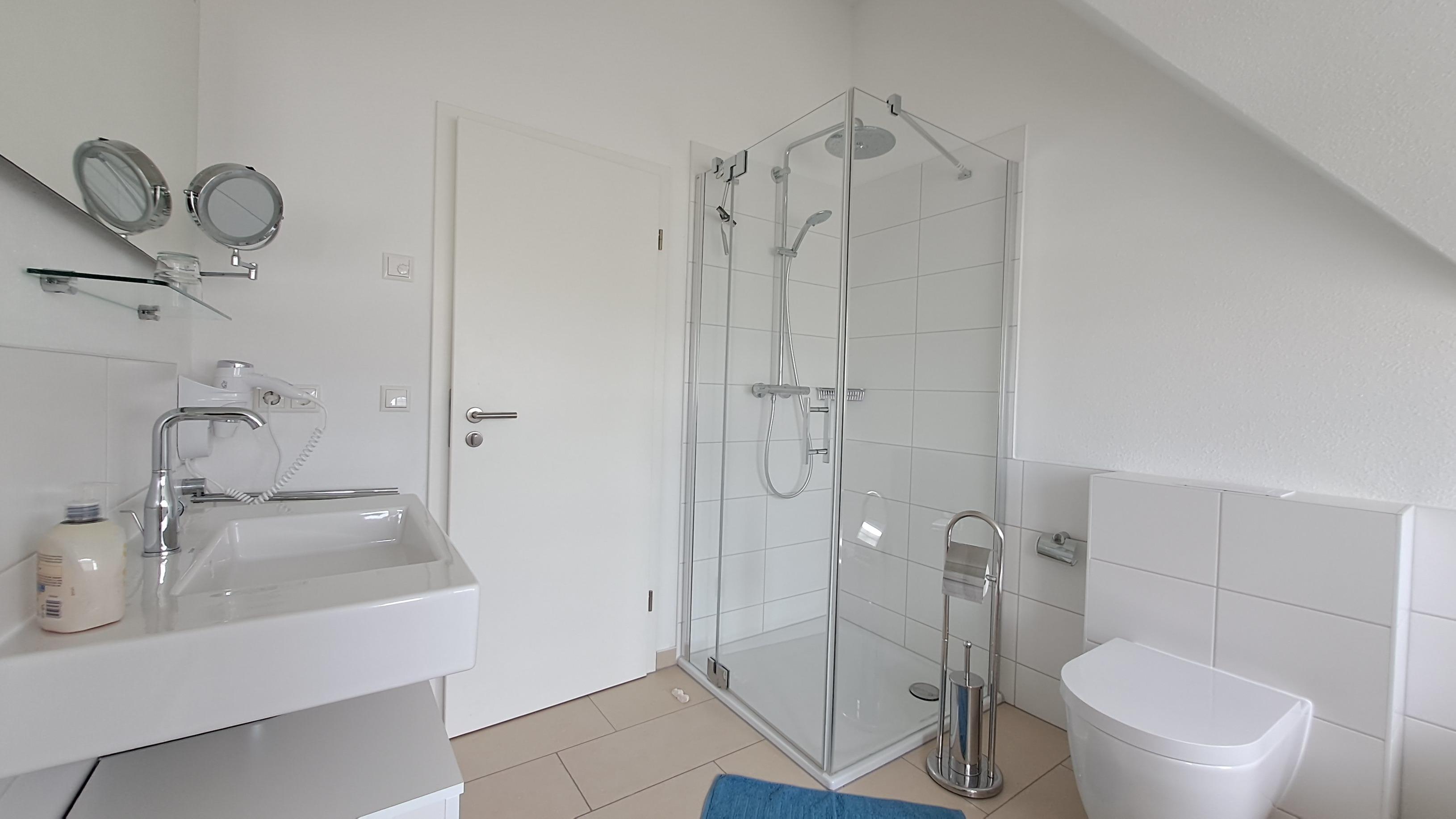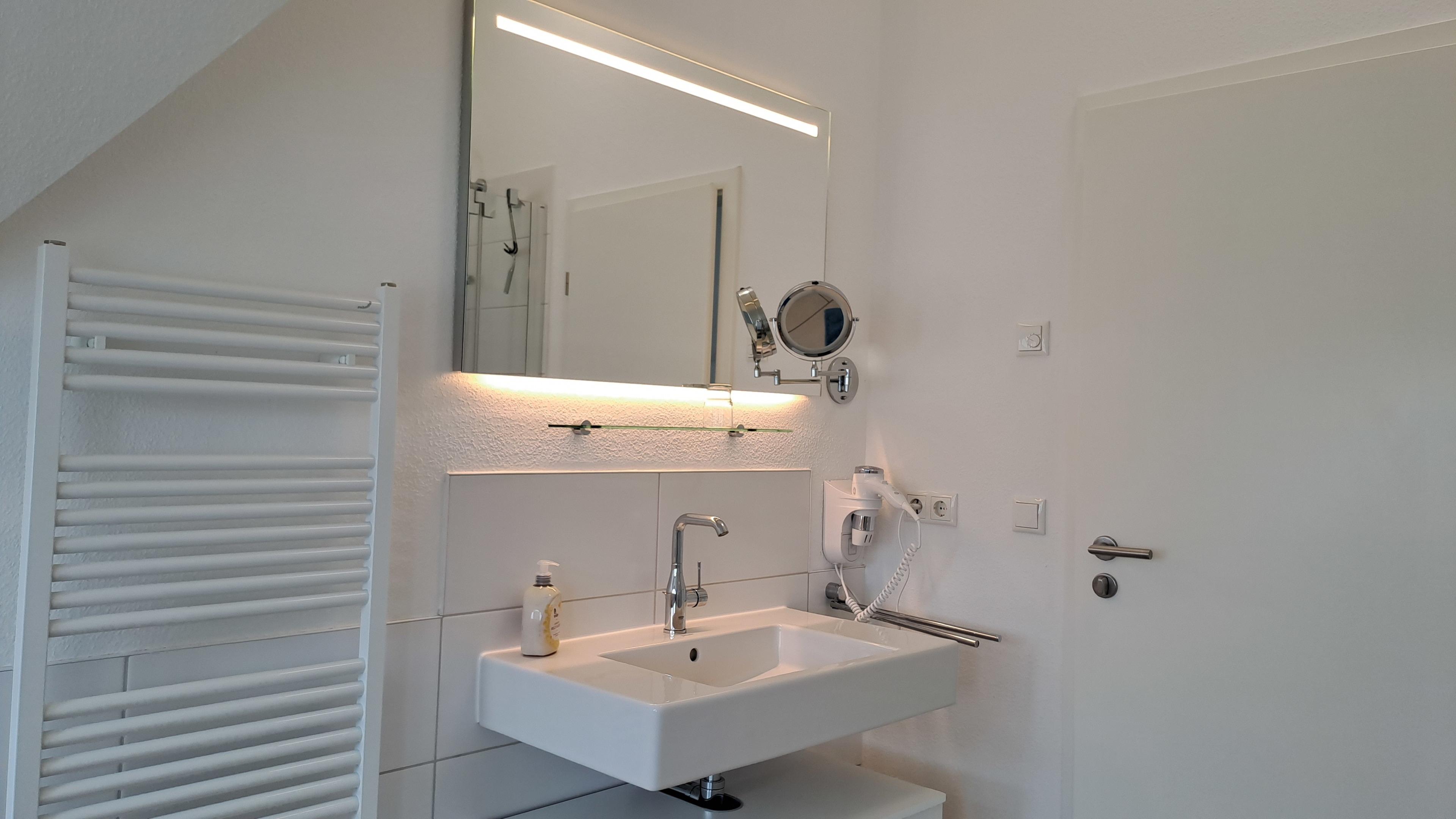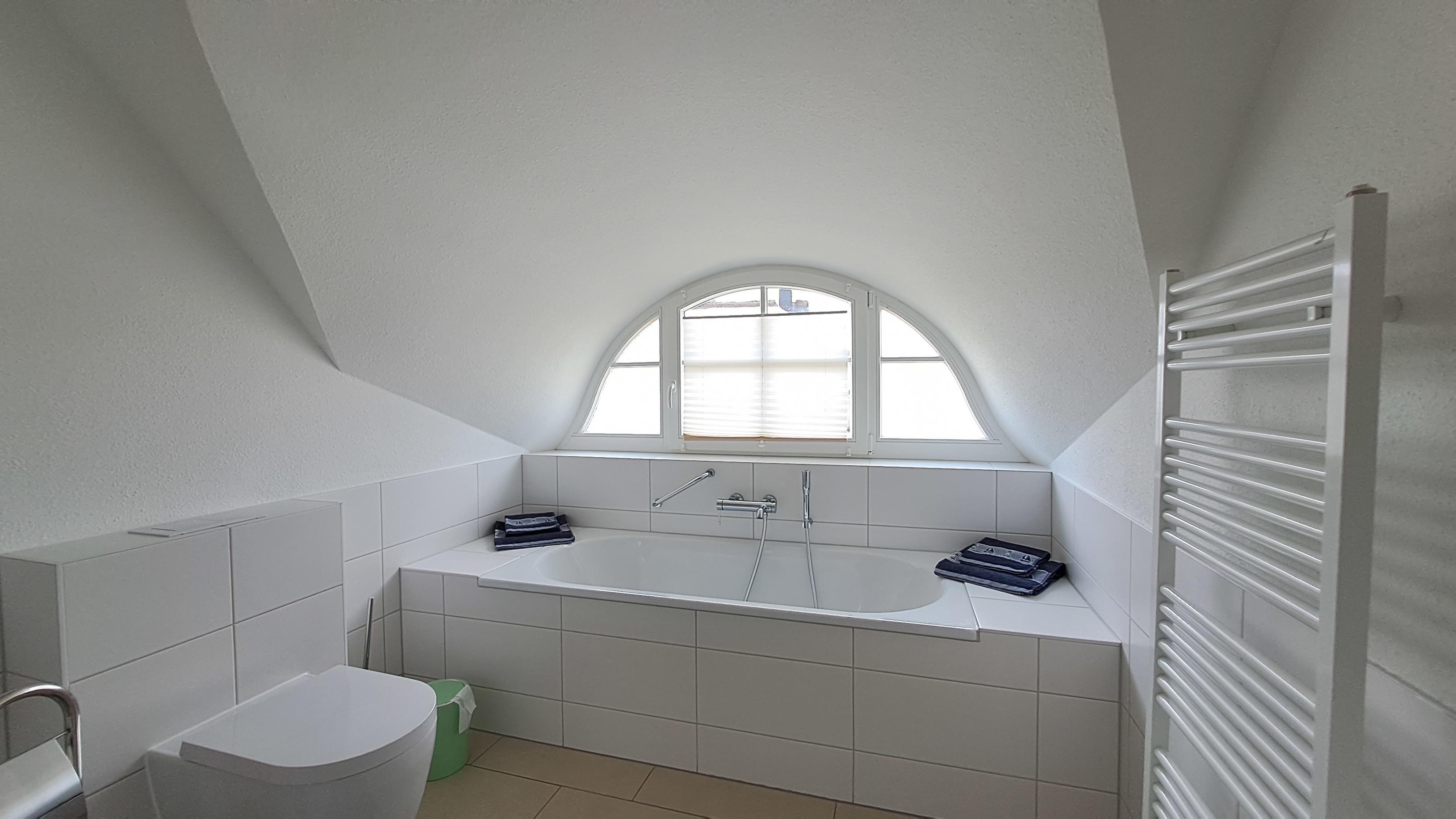 - Im DG mit Badewanne, ebenerdiger Dusche, Handtuchwärmer und Föhn
