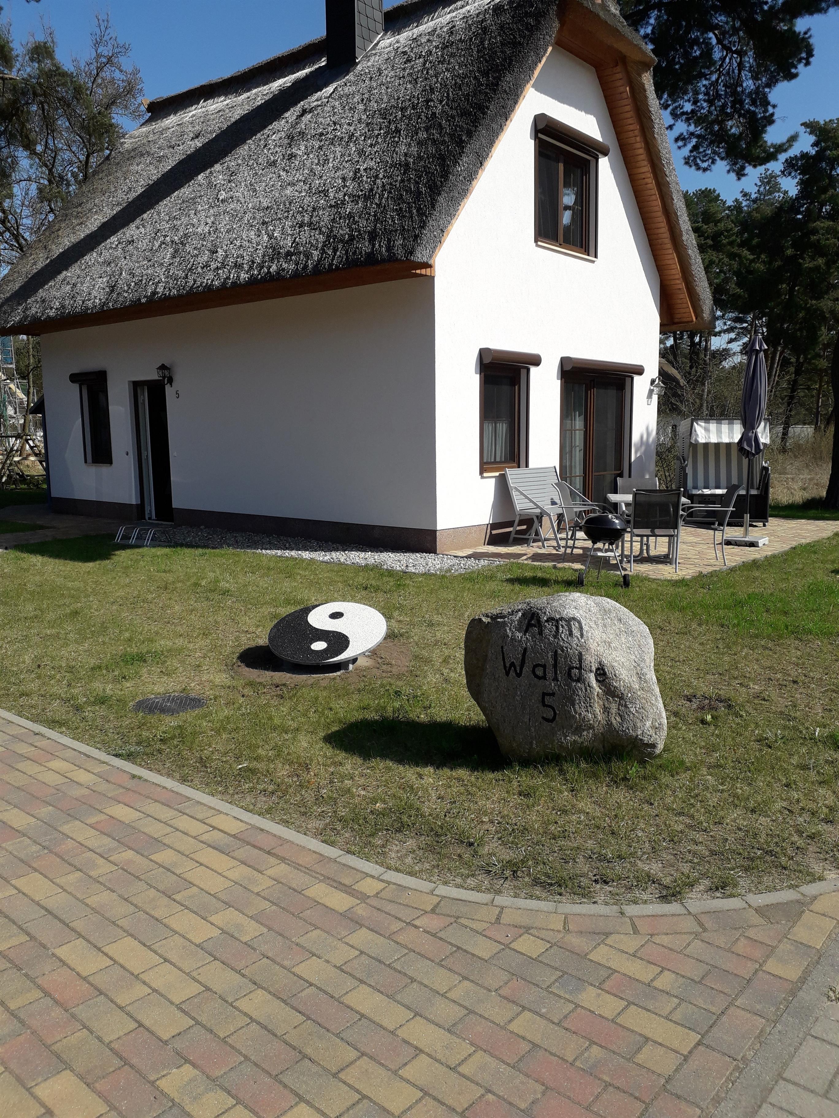 Unser reetgedecktes, 2016 erbautes Ferienhaus mit ca.650 qm, liegt in Zirchow, am Stettiner Haff in einer gepflegten Ferienhausanlage, ein abschließbarer kleiner Anbau für Fahrräder und Gartenutensilien, Wärmepumpe und einer schönen Markise