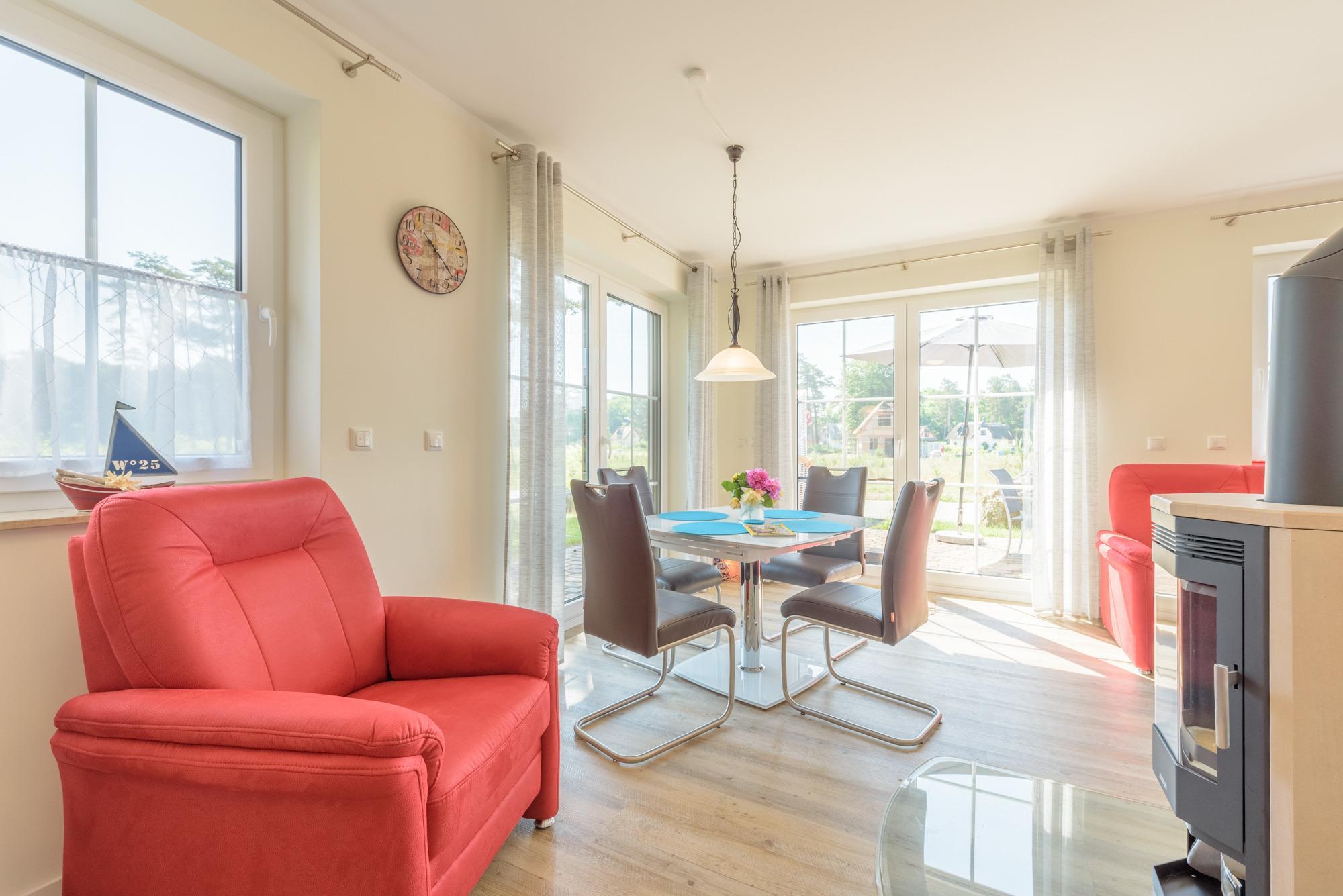 Modernes Ferienhaus mit Reetdach, Kamin und WLAN nahe Stettiner Haff in ruhiger Lage.