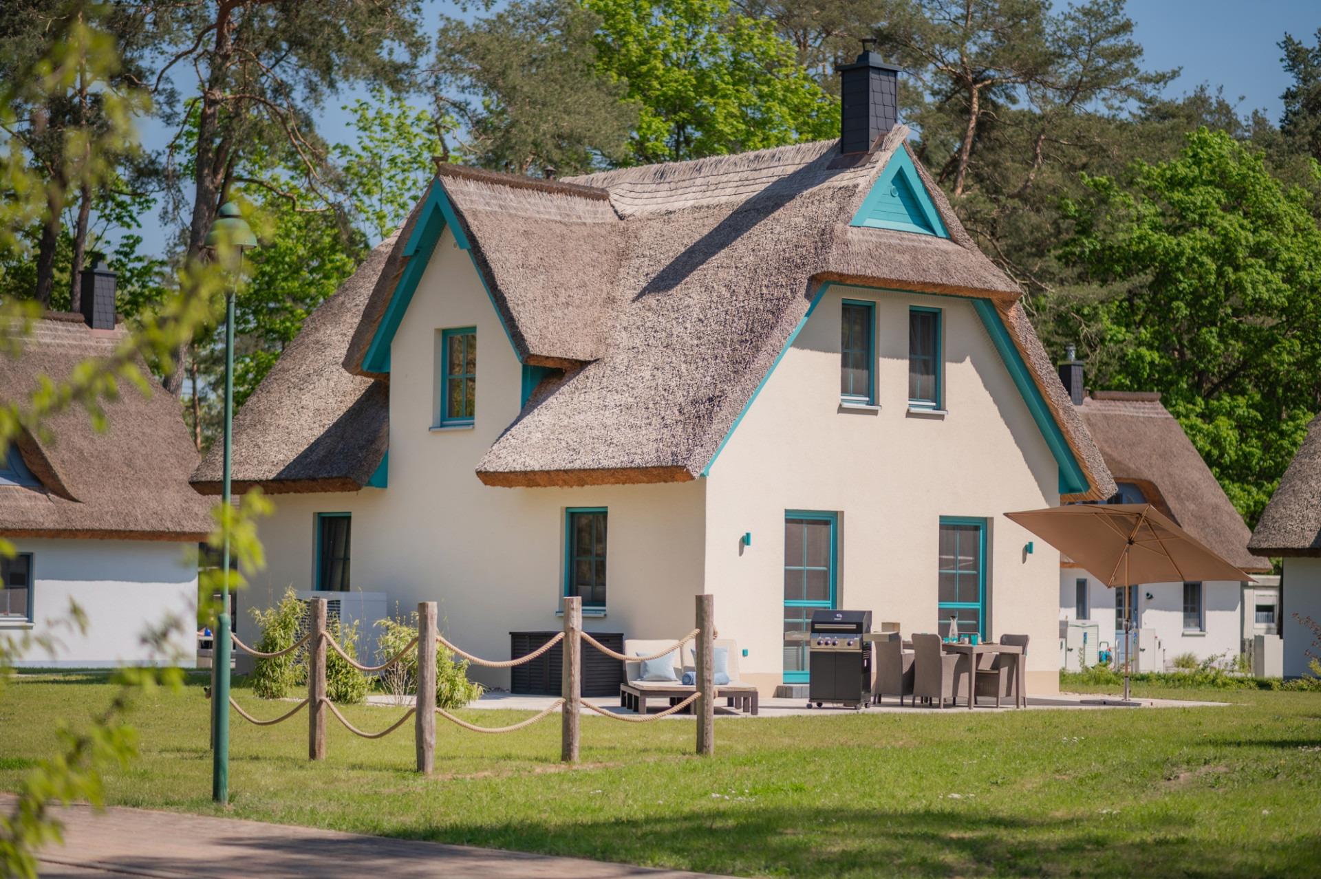 Modernes Reetdachhaus mit Sauna, Kamin und Terrasse im idyllischen Zirchow auf Usedom.