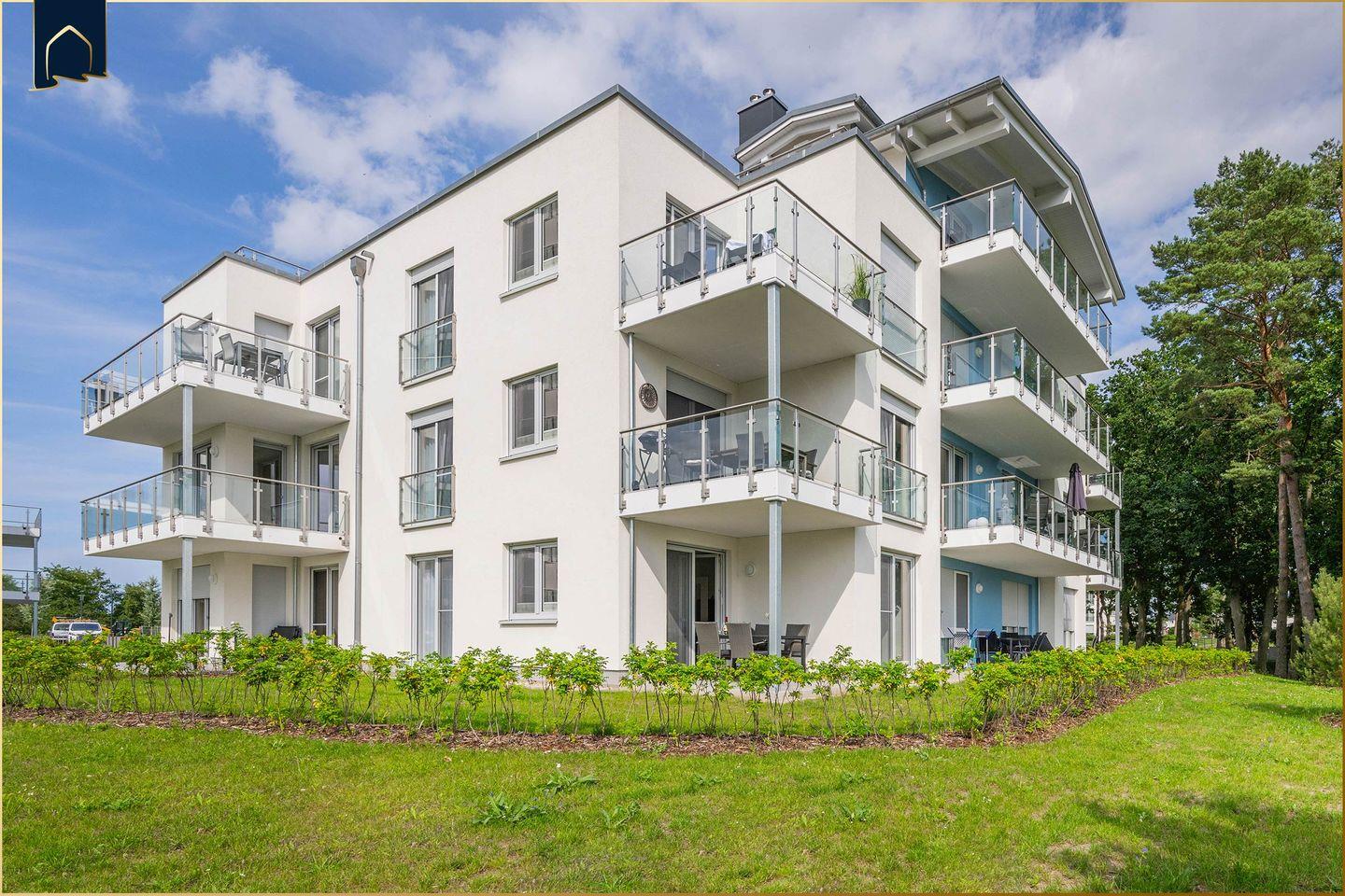 Moderne Ferienwohnung am Stettiner Haff mit Sauna, Wellnessbereich und Spielmöglichkeiten im Grünen.