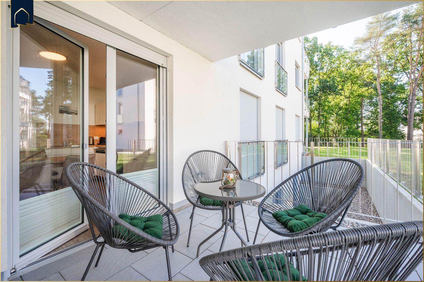 Moderne Ferienwohnung Klippenblick am Stettiner Haff mit Sauna, Fitnessraum und Terrasse in ruhiger Naturidylle.