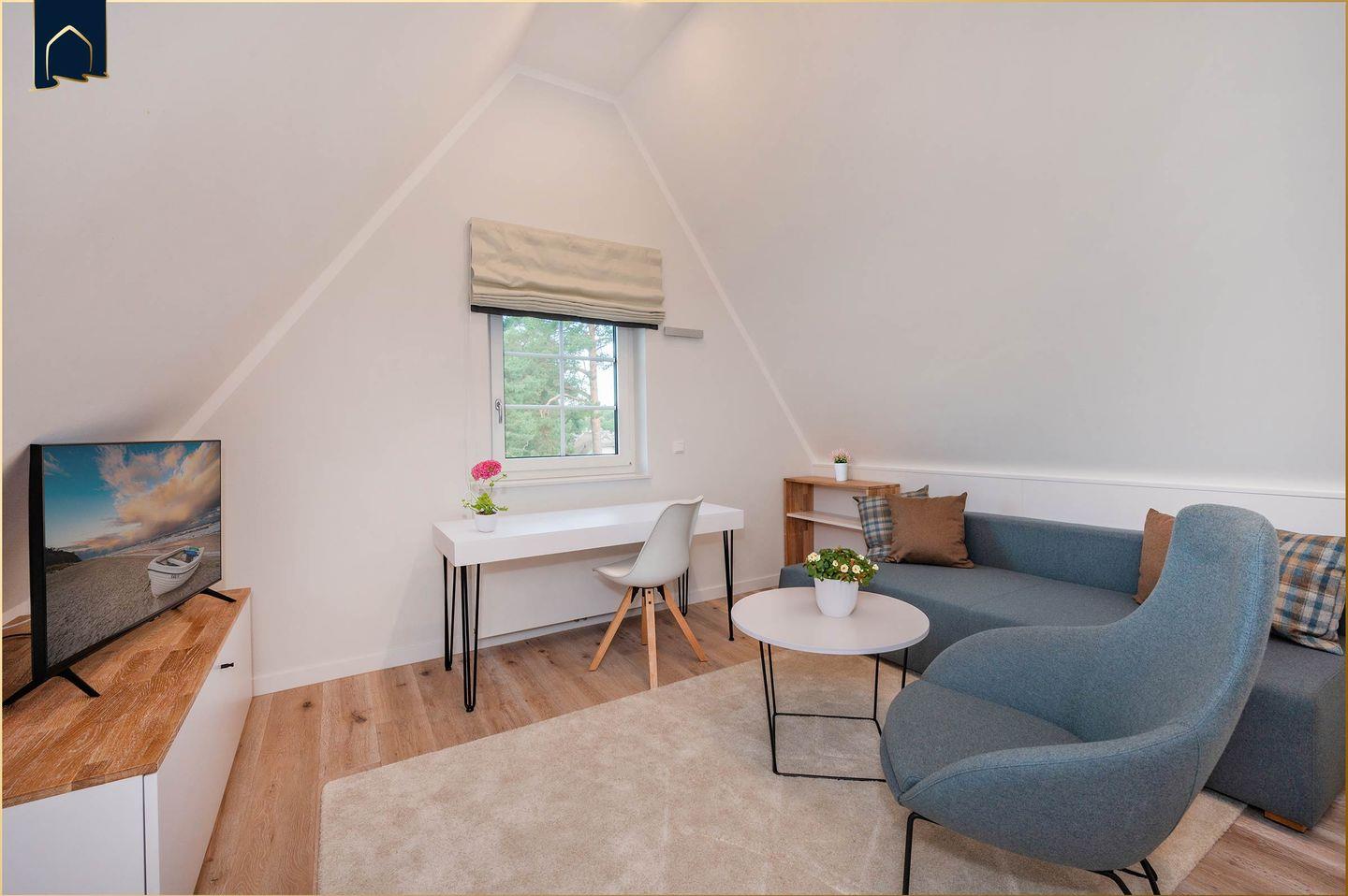 Dieses stilvolle Ferienhaus bietet mit ca. 80?m² Wohnfläche und drei Etagen den perfekten Rückzugsort für Familien oder Paare, die Ruhe und Komfort suchen. Eingebettet in eine idyllische Dorfkulisse, lädt das Haus mit zwei gemütlichen Schlafzimmern, einem modernen Badezimmer, einem separaten Gäste-WC und großzügigem Wohnbereich zum Entspannen ein. Ob romantischer Kaminabend, entspannte Stunden in der Sauna oder ein gutes Buch auf dem sonnigen Balkon – hier findet jeder seinen Lieblingsplatz. Die geschmackvolle Einrichtung wird durch hochwertige Materialien, Fußbodenheizung und liebevolle Details ergänzt.