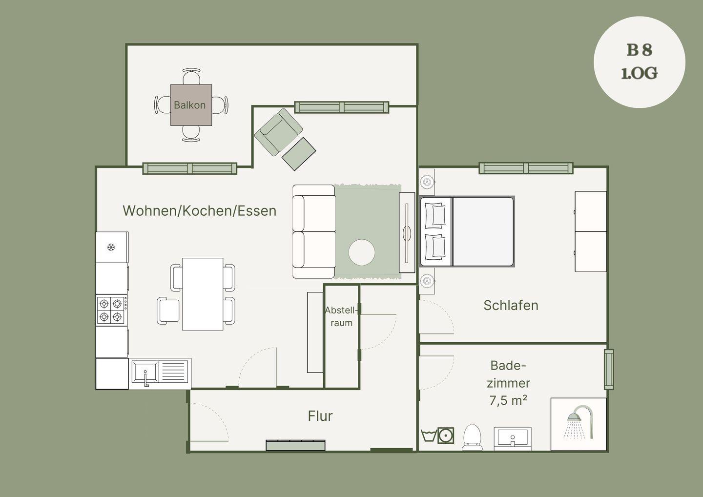 Die voll ausgestattete Küche ermöglicht Ihnen, kulinarische Köstlichkeiten zuzubereiten, die Sie dann auf dem sonnigen Balkon genießen können. Hier können Sie morgens Ihren Kaffee trinken oder abends bei einem Glas Wein die Stille des Waldes genießen.
