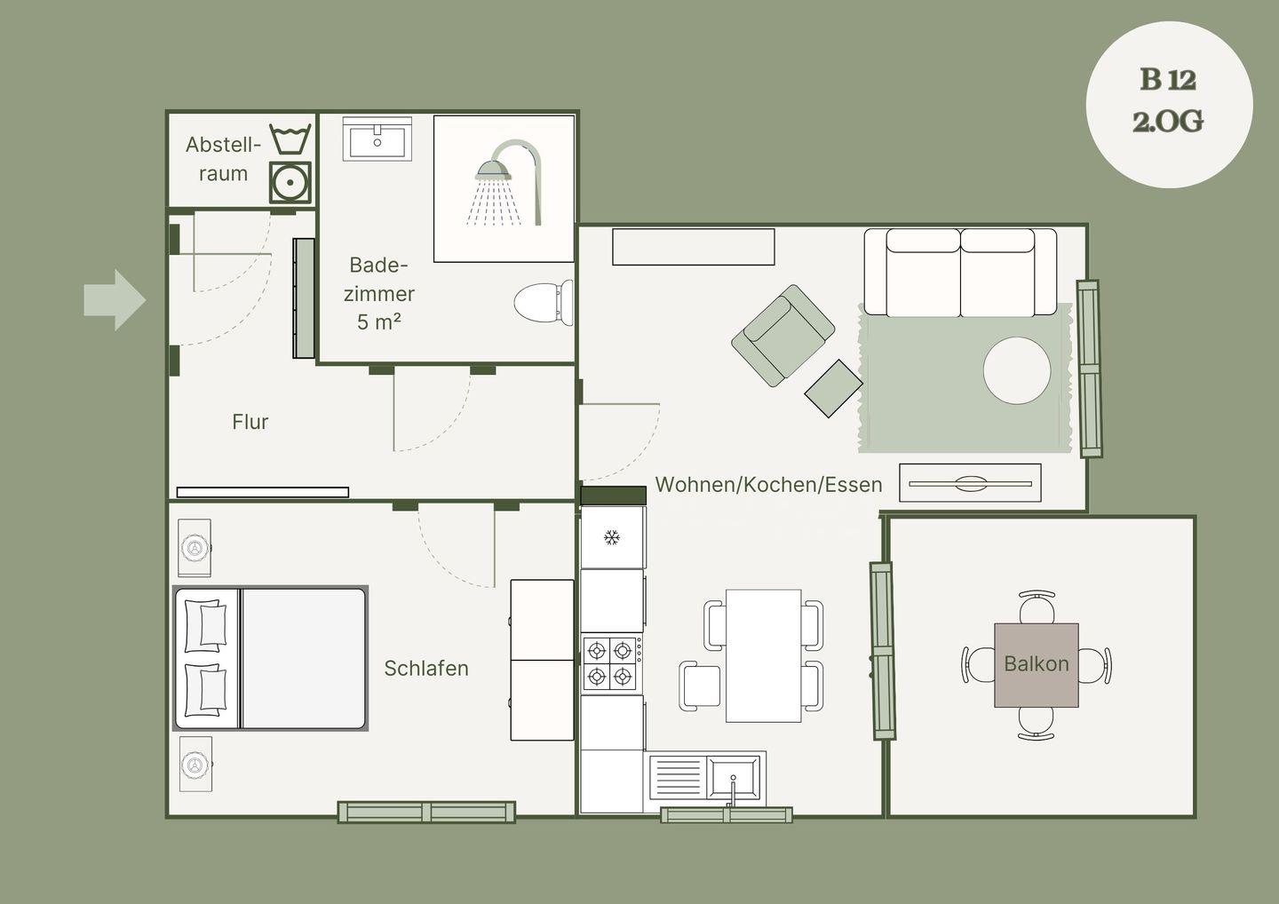 Wohnfläche 56 m²