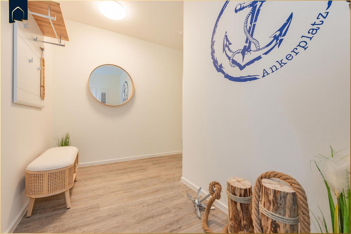 Die FeWo Ankerplatz in Zirchow bietet auf 90 m² Platz für bis zu 6 Personen und überzeugt mit zwei Schlafzimmern, zwei Bädern, einer offenen Küche, Balkon, WLAN und modernen Annehmlichkeiten wie Sauna, Fitnessraum, Billard und Gemeinschaftswaschküche. Ein Privatparkplatz, kindgerechte Ausstattung und zahlreiche Freizeitmöglichkeiten in ländlicher Lage runden das Angebot ab.