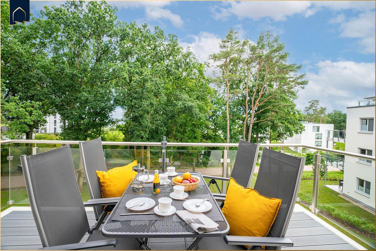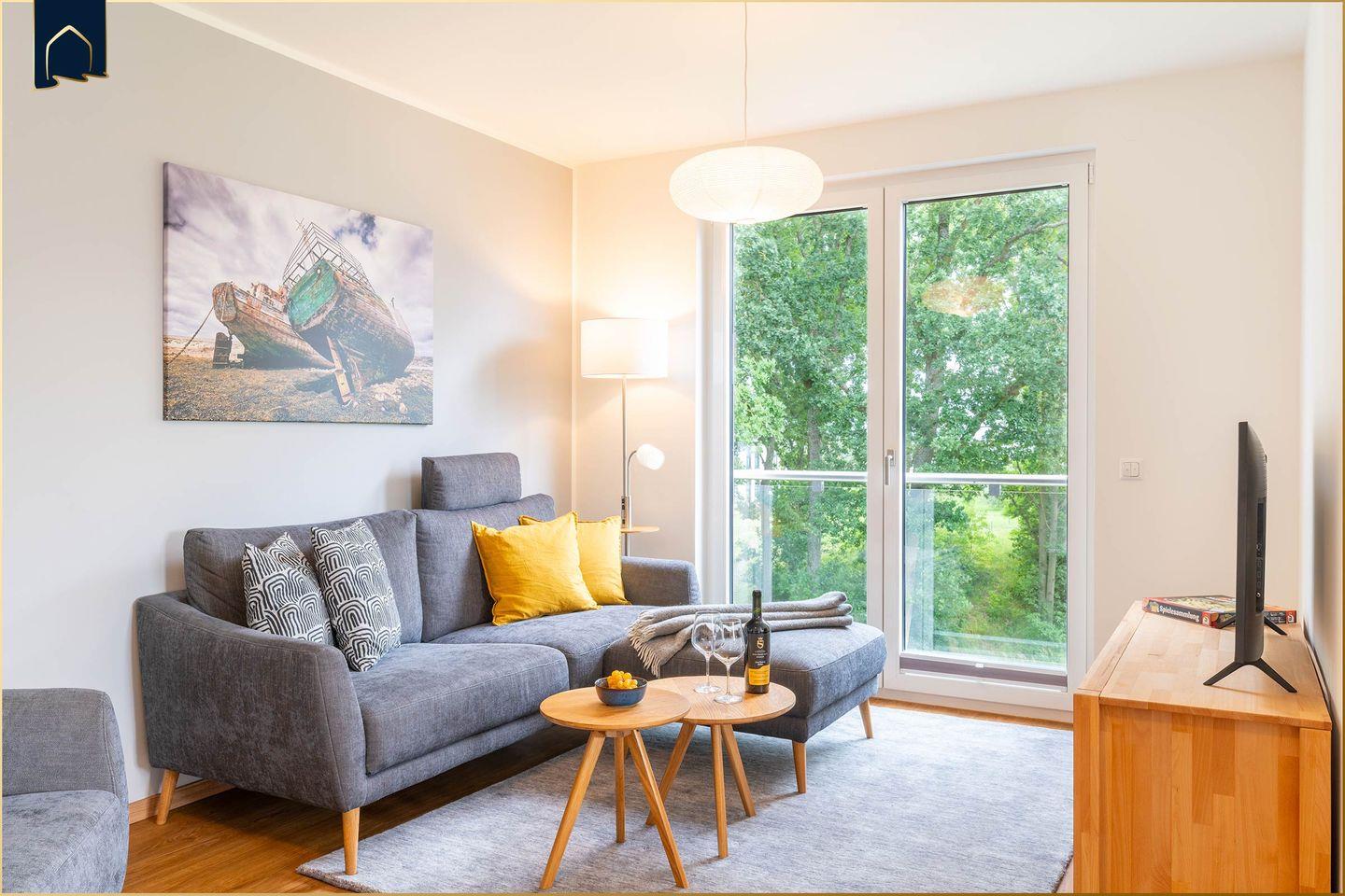 Moderne Ferienwohnung HaffSeits in Zirchow mit Balkon, Sauna und Freizeitangeboten in ruhiger Naturkulisse.