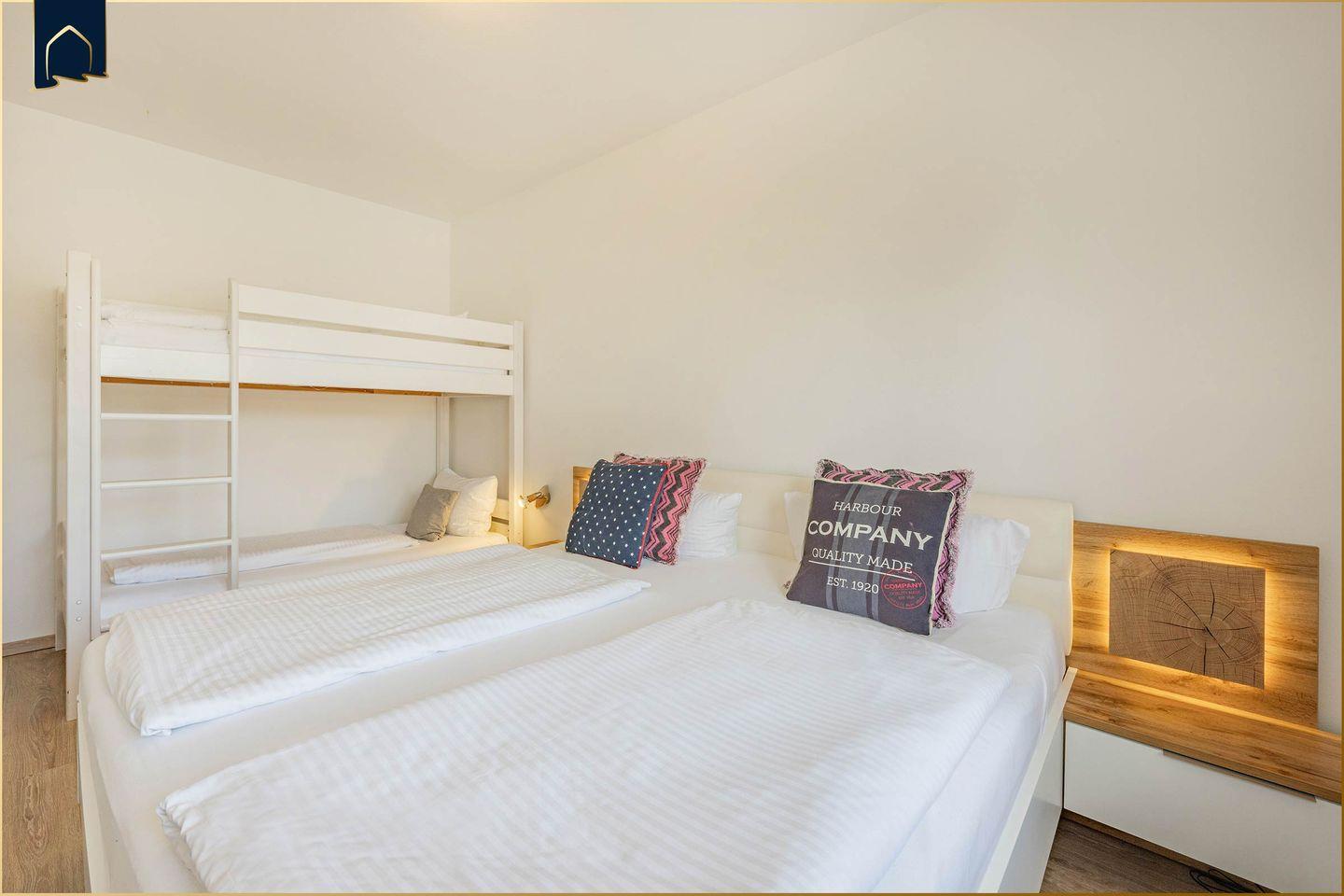 Die Unterkunft verfügt über drei großzügige Schlafzimmer und zwei moderne Duschbäder – perfekt für bis zu acht Personen. Die offene Wohnküche ist voll ausgestattet mit Backofen, Mikrowelle, Spülmaschine, Kaffeemaschine, Toaster und vielem mehr. Für angenehme Wärme sorgt eine Fußbodenheizung im gesamten Haus. Im Wohnzimmer lädt eine bequeme Sofaecke zum Verweilen ein, ergänzt durch einen Flachbild-TV, Bücher und Gesellschaftsspiele für gemütliche Familienabende. Auch an praktisches Zubehör wie Waschmaschine, Wäscheständer und Staubsauger wurde gedacht.