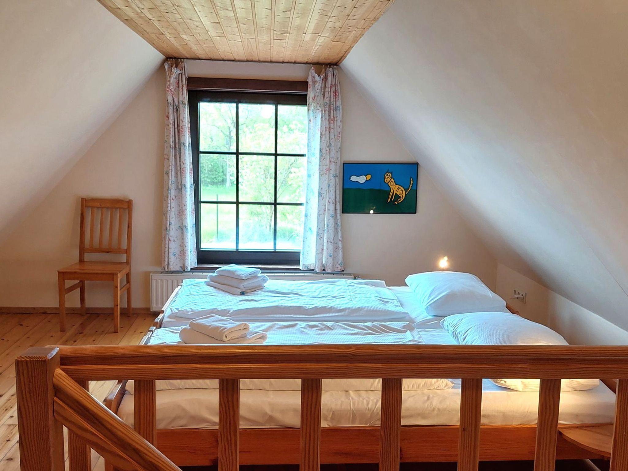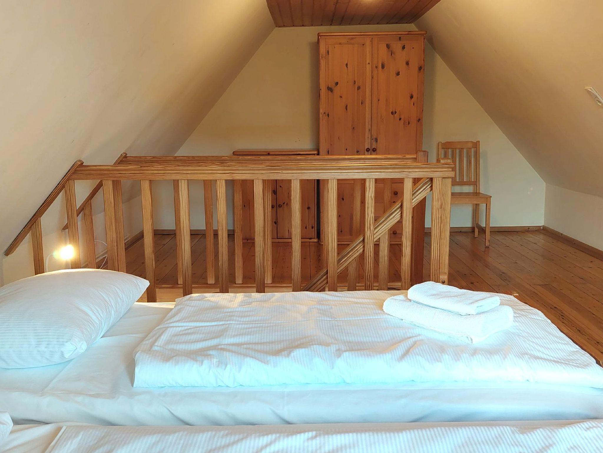 Ihr ca. 50 qm großes freistehendes reetgedecktes Bauernhaus 8RB1 (Nichtraucher) mit typisch niedrigen Raumhöhen ist im Maisonettenstil über 2 Etagen erbaut und mit einer offenen Treppe verbunden. Vor dem Wohnbereich im Erdgeschoss befindet sich eine schöne Südterrasse mit grünem Ausblick auf den eigenen Gartenteil. Im gemütlichen Wohnbereich mit einer Sitzgruppe und einem großem Flatscreen-TV finden Sie neben der angrenzenden Wohnküche auch einen Essbereich. Im Küchenbereich erwartet Sie ein einen Backofen, Kühlschrank, eine Kaffeemaschine, Wasserkocher sowie weitere nützliche Küchenhelfer. Ebenfalls im Erdgeschoss befindet sich das Badezimmer mit Dusche, Waschtisch und WC. Im Obergeschoss finden Sie den Schlafbereich mit Doppelbett und Kleiderschrank. Auch ein Kinderreisebett würde dort Platz finden. Durch den umzäunten eigenen Garten und die grüne Umgebung ist diese Wohnung perfekt für Kinder und Haustiere geeignet.