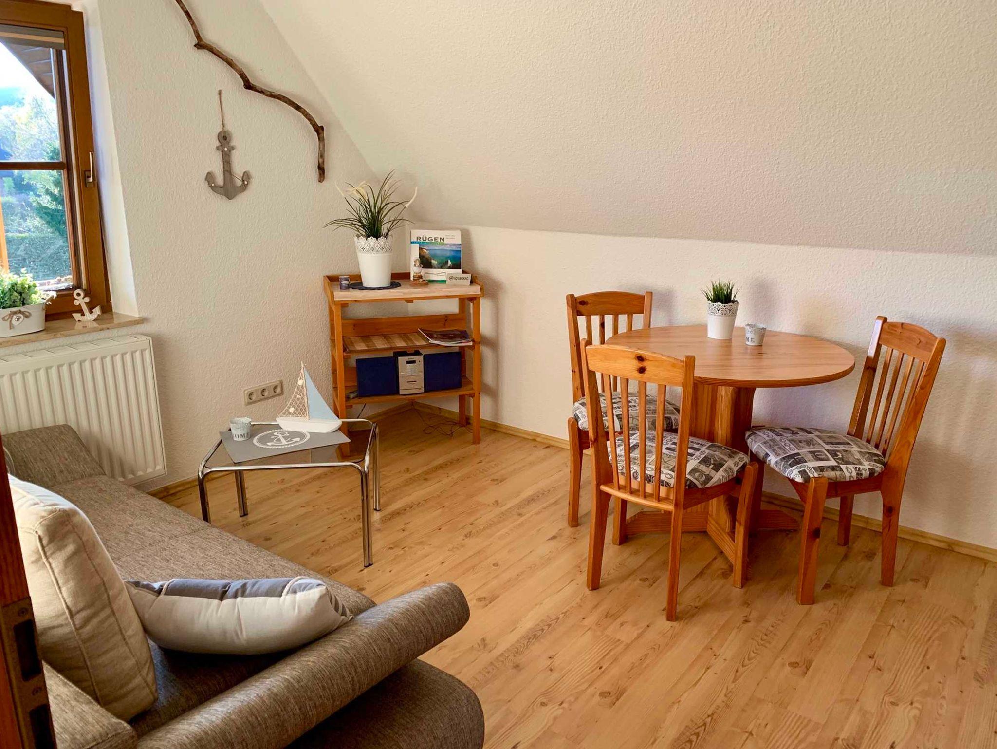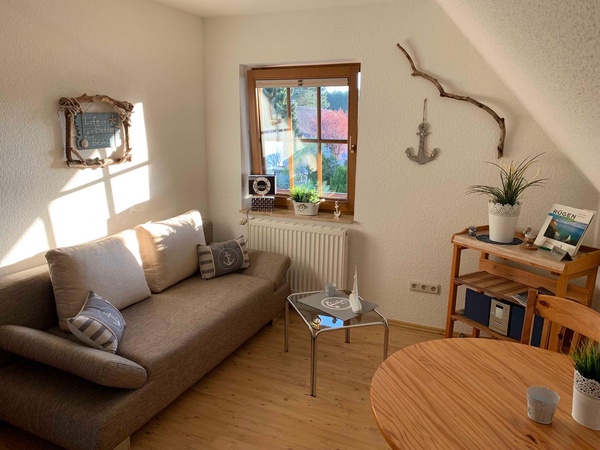 Unsere 40m² traumhaft schöne, geräumige Ferienwohnung, ist in der oberen Etage eines reet gedeckten Einfamilienhauses und nur 3,5 km vom Ostseebad Binz entfernt gelegen.