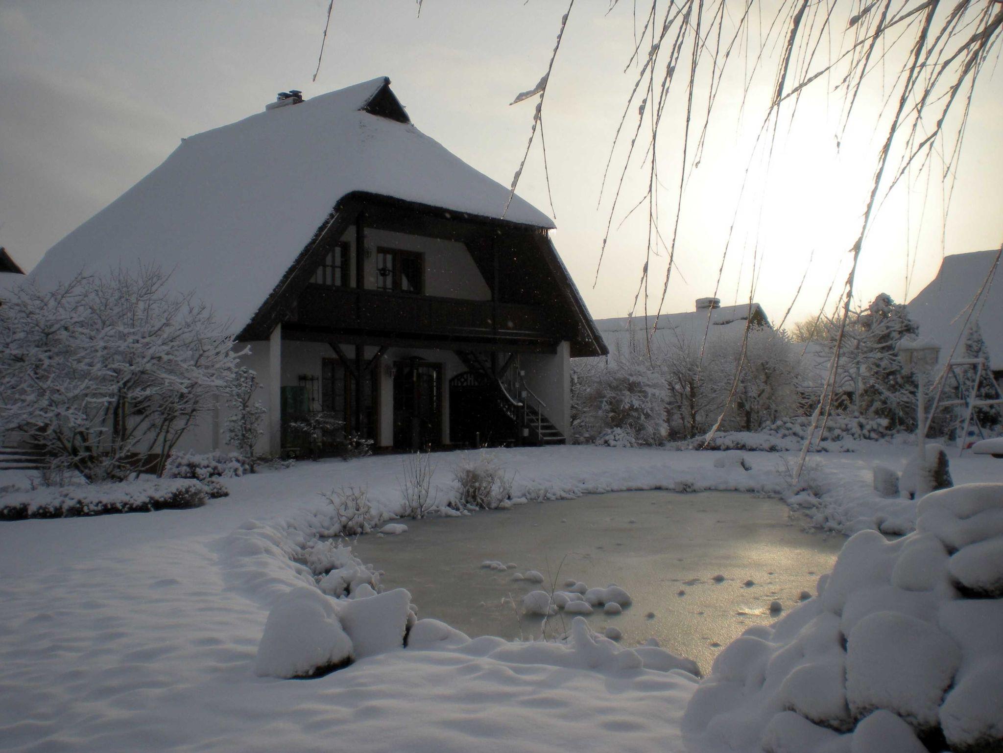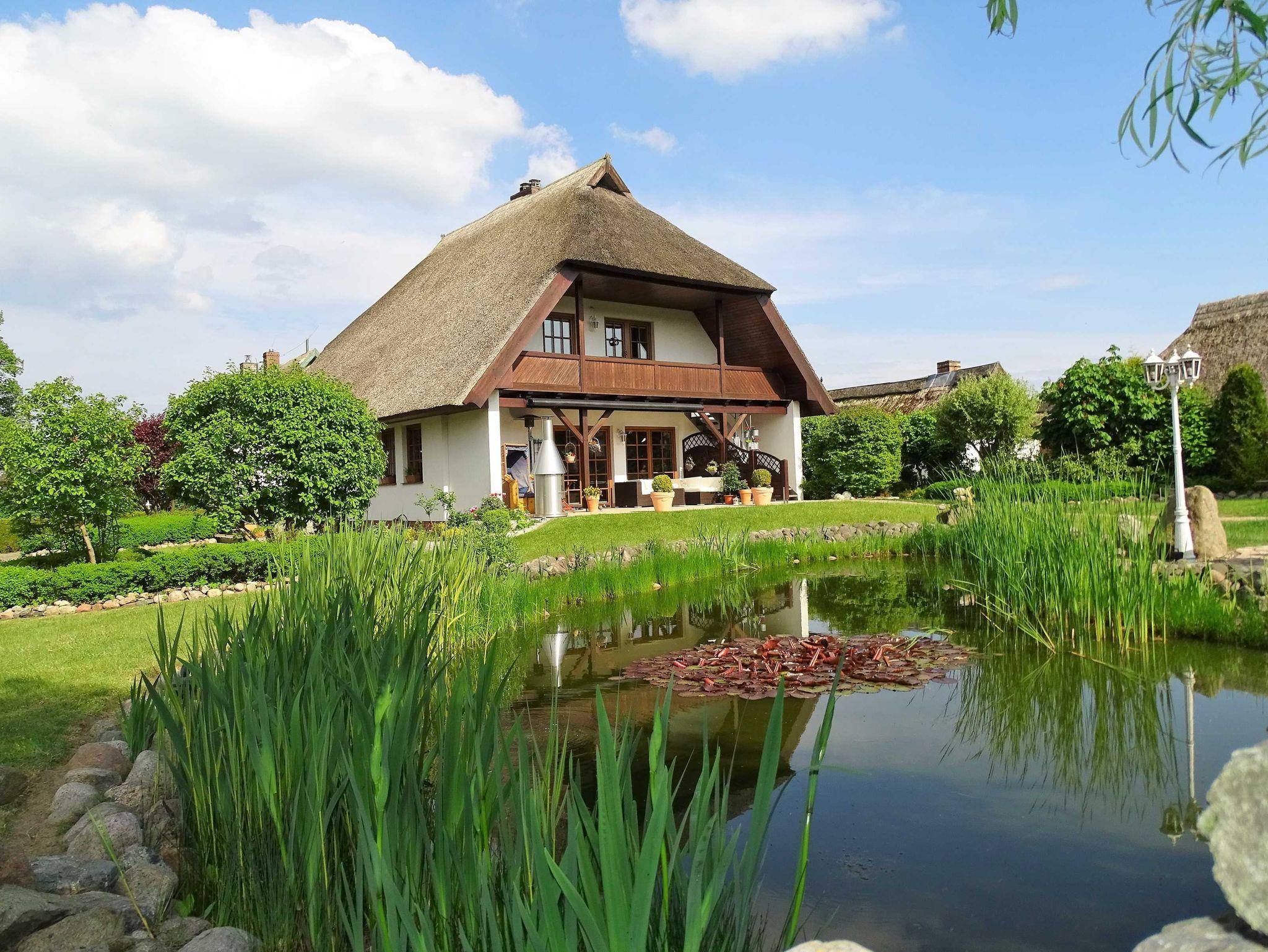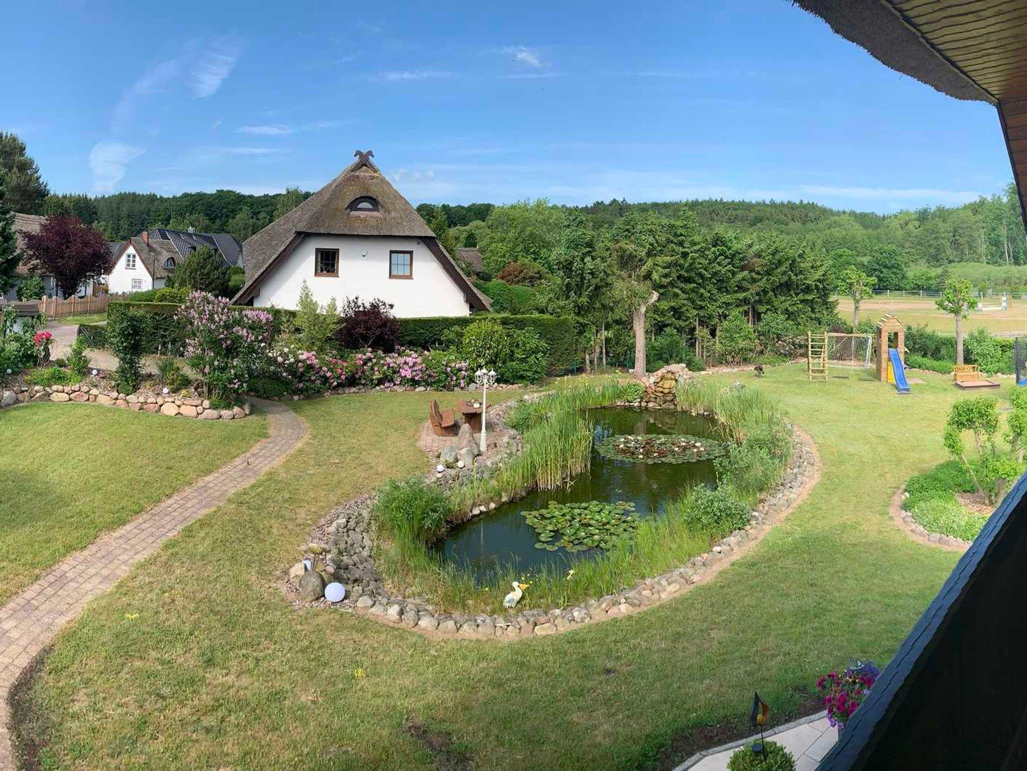 Gemütliche Ferienwohnung mit Reetdach, Balkon und Teichblick nahe Ostseebad Binz.