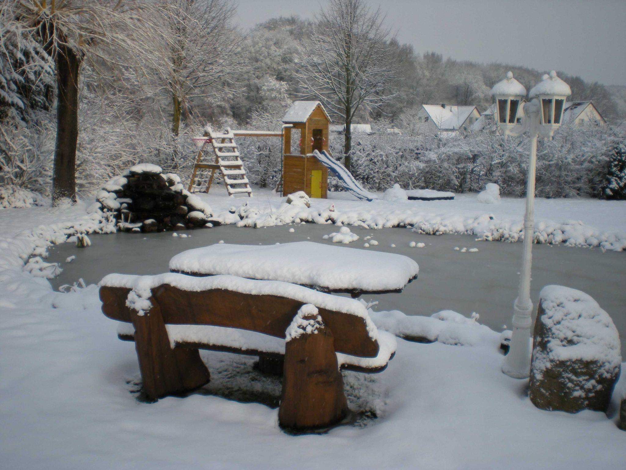 Wir möchten Sie darauf aufmerksam machen, dass der eigene Gartenteich sehr tief ist. Bitte lassen Sie Ihre Kinder nicht unbeaufsichtigt in den Garten. Die Benutzung des Gartens ist auf eigene Gefahr.