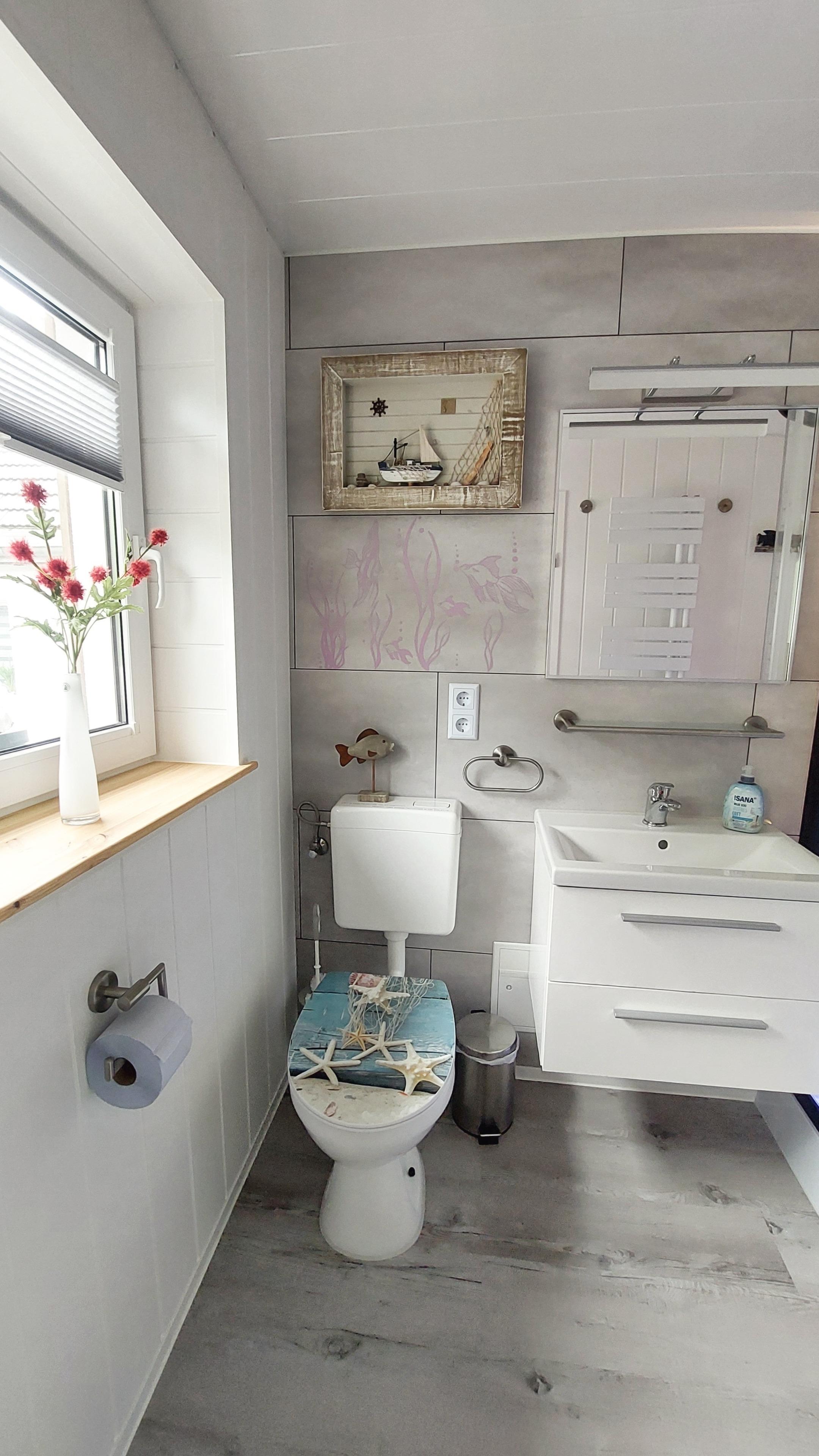Das "Strandhus up`n Dörp" hat einen Wohn-/Schlafraum mit 2 Einzelbetten, Küchenzeile und Bad mit Dusche im maritimen Flair.
