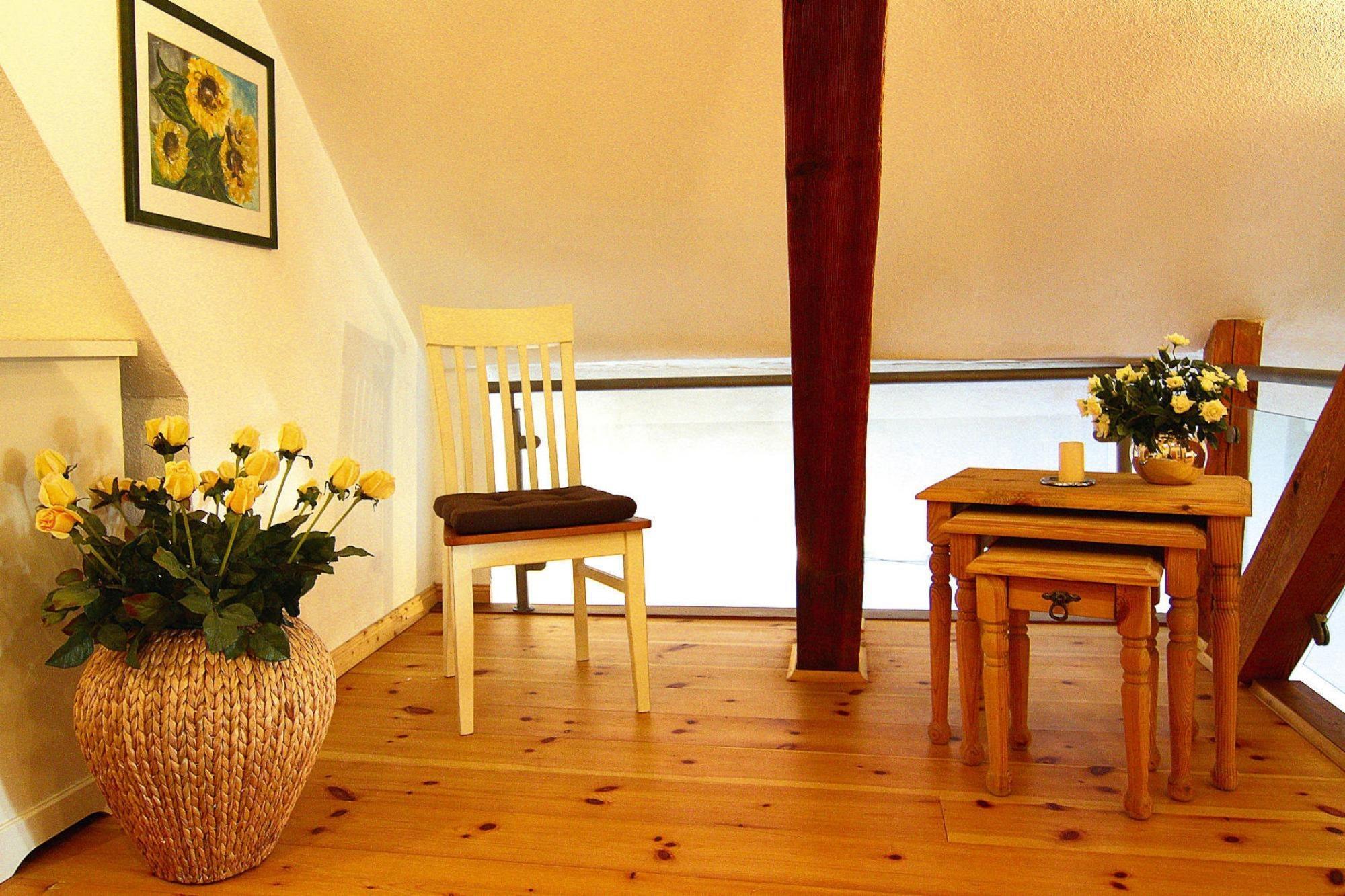 Moderne Studio-Ferienwohnung im Obergeschoß eines reetgedeckten, denkmalgeschützen Fachwerkhauses aus dem Jahr 1788. Das Haus besticht durch seine ruhige Lage im südlichen Teil Rügens an der Schoritzer Wiek. Die Halbinsel Zudar ist geprägt durch üppiges Grün und bezaubernde Landschaften, die größtenteils unter Naturschutz gestellt wurden. Die einsamen Naturstrände sind ideal für Erholungssuchende und Gäste die im Urlaub entspannen möchten. Wer etwas mehr Trubel mag, besucht die quirligen Seebäder mit ihren Sandstränden, die inmitten ihrer Bäderarchitektur viele Restaurants und Shoppingmeilen bieten. Highlights inklusive: Alle verbrauchsabhängigen Energiekosten WLAN