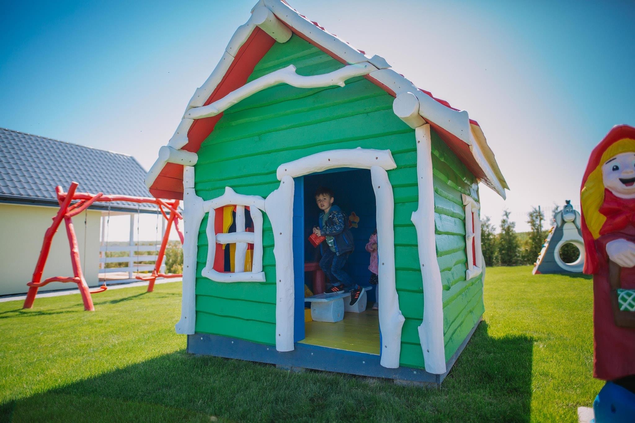 In einer ruhigen Gegend, am Rande des Sommerdorfes Bobolin, 1,4 km von einem schönen Sandstrand entfernt, befindet sich ein Familienferienzentrum, das komfortable Unterkünfte und viel Platz für Kinderspiele bietet. Auf dem umzäunten Grundstück steht eine Reihe von 8 einstöckigen Häusern. Jedes Haus verfügt über eine überdachte Terrasse mit Gartenmöbeln und Grillzubehör. Das Haus besteht aus einem Wohnzimmer mit Küche, einem Badezimmer mit Dusche und 2 separaten Schlafzimmern. Das Wohnzimmer verfügt über ein ausklappbares 2-Sitzer-Sofa, einen Tisch mit Stühlen und einen Fernseher. An kälteren Tagen können die Hütten beheizt werden. WLAN ist verfügbar. Auf dem weitläufigen Gelände des Ferienresorts wurden die meisten Räume speziell für die Kleinsten konzipiert. Hier gibt es einen sehr großen, attraktiven Spielplatz. Parkplatz vor Ort (teilweise überdacht). Es gibt auch eine Tischtennisplatte und Tischfußball. Im Preis des Aufenthalts sind enthalten: Bettwäsche, Handtücher, Strom- und Wasserverbrauch, Internet, Parkplatz, Endreinigung. Ein Babybett und ein Hochstuhl sind auf vorherige Anfrage erhältlich. Sehenswürdigkeiten in der Nähe: Die größte Attraktion der Gegend sind die sauberen, breiten und unbewohnten Strände, die sich von Dabkowice im Westen über die Kurorte Dabki, Bobolin, Darlówko bis zum Sommerdorf Wicie im Osten erstrecken. Sie fördern gesunde Spaziergänge und unbeschwertes Sonnenbaden. Entlang der gesamten Küste verläuft ein Radweg, über den Sie bequem pendeln und benachbarte Küstenstädte besuchen können. In der Nähe liegt auch der Bukowo-See – ein wahres Paradies für Segler und Windsurfer. Es gibt einen Wassersportausrüstungsverleih und sogar einen kleinen Strand am See. In der Nähe des Zentrums befindet sich außerdem ein Gestüt, das Reitbegeisterte zu Ausritten auf der Koppel und zum Geländereiten einlädt.