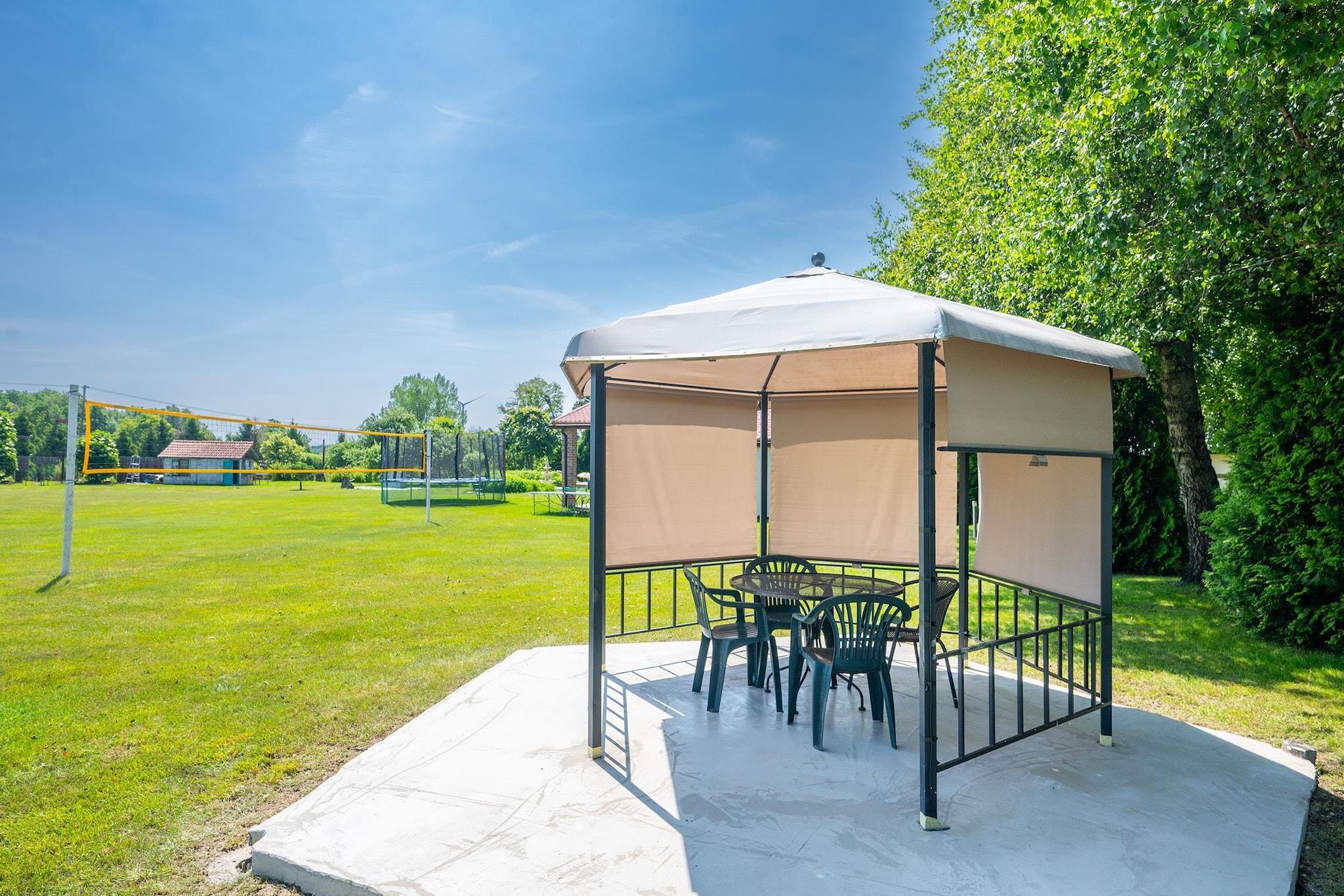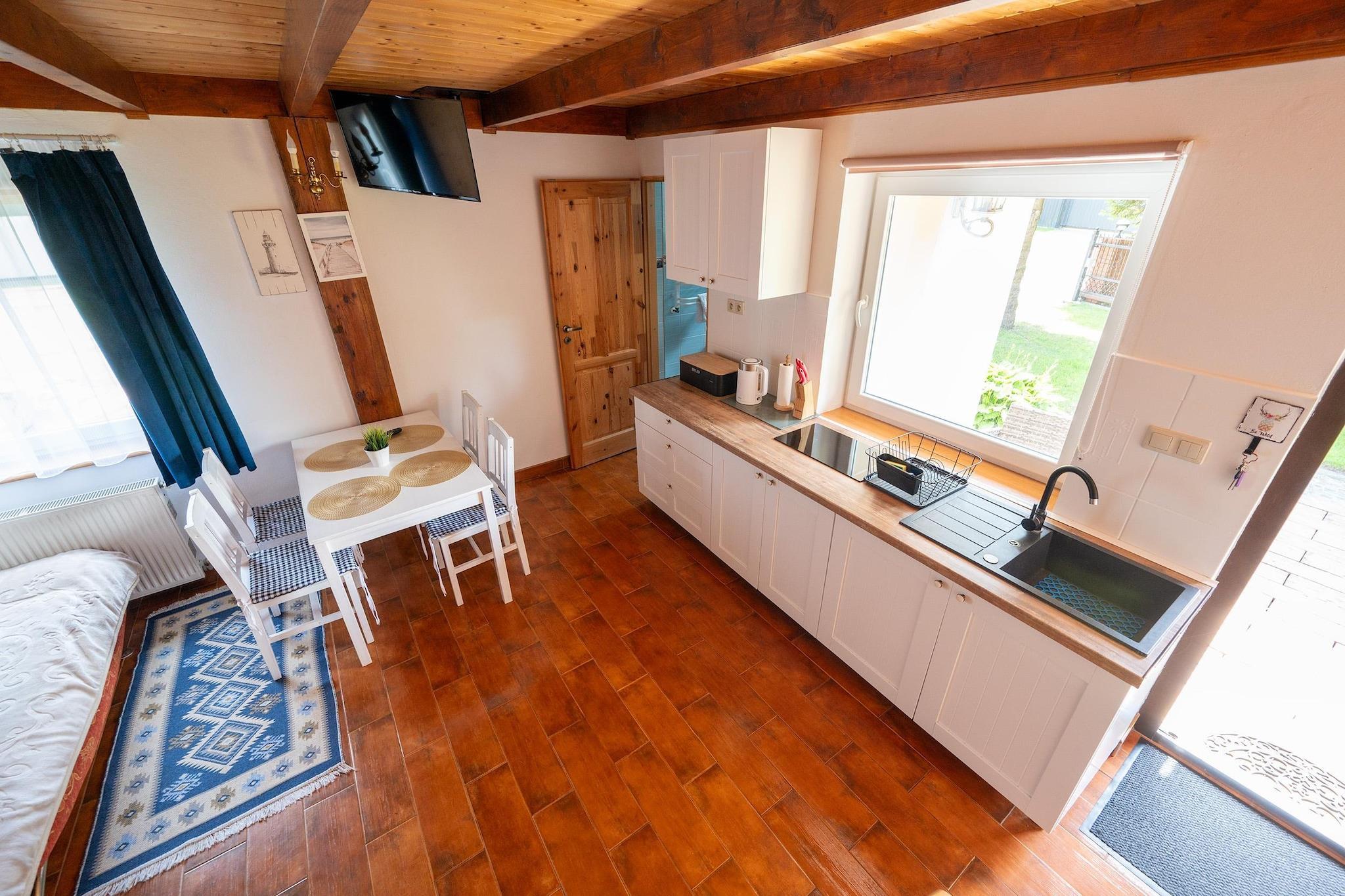 Ein Ferienresort mit Sommerschwimmbad im ruhigen Ort Domaslawice, 6 km vom Strand entfernt. Die Umgebung ist geprägt von endlosen Wiesen, Feldern und Wäldern und bietet die perfekte Kulisse für einen erholsamen Urlaub. Die Küstenstadt Darlowo mit ihren zahlreichen Sehenswürdigkeiten und attraktiven gastronomischen Einrichtungen ist nur 3 km entfernt. Wir bieten Unterkunft in komfortablen, geräumigen, zweistöckigen Ferienhäusern. Jedes verfügt über eine überdachte Terrasse mit Gartenmöbeln, Liegestühlen und Grillplatz. Jedes Haus verfügt im Erdgeschoss über ein Wohnzimmer (TV, Doppelschlafcouch, Esstisch), eine Küche, ein Badezimmer mit Dusche und ein Doppelzimmer (zwei Einzelbetten oder ein Doppelklappbett). Im Obergeschoss befindet sich ein zweites Doppelzimmer mit Balkon und ein zusätzliches WC. Zentralheizung und WLAN sind vorhanden. Das Resort bietet Privatsphäre auf einem 2 Hektar großen Grundstück mit einem Sommerschwimmbad (optional mit Überdachung), einem Spielplatz, einem Sportplatz und einer Tischtennisplatte. Sichere Parkplätze stehen zur Verfügung. Im Preis inbegriffen sind: Bettwäsche, Strom- und Wasserverbrauch, Heizung, Internet, Parkplatz und Kurtaxe. Kinderbett und Hochstuhl sind auf Anfrage erhältlich. Die nahegelegenen Badeorte Darlowo und Darlówko bieten neben wunderschönen Stränden auch einen Yachthafen mit Wassersportausrüstungsverleih und einen Hafen für Kreuzfahrtschiffe. In der Nähe befindet sich auch ein attraktiver Wasserpark. Die nahegelegenen Flüsse Wieprza und Grabowa bieten hervorragende Kajakstrecken.