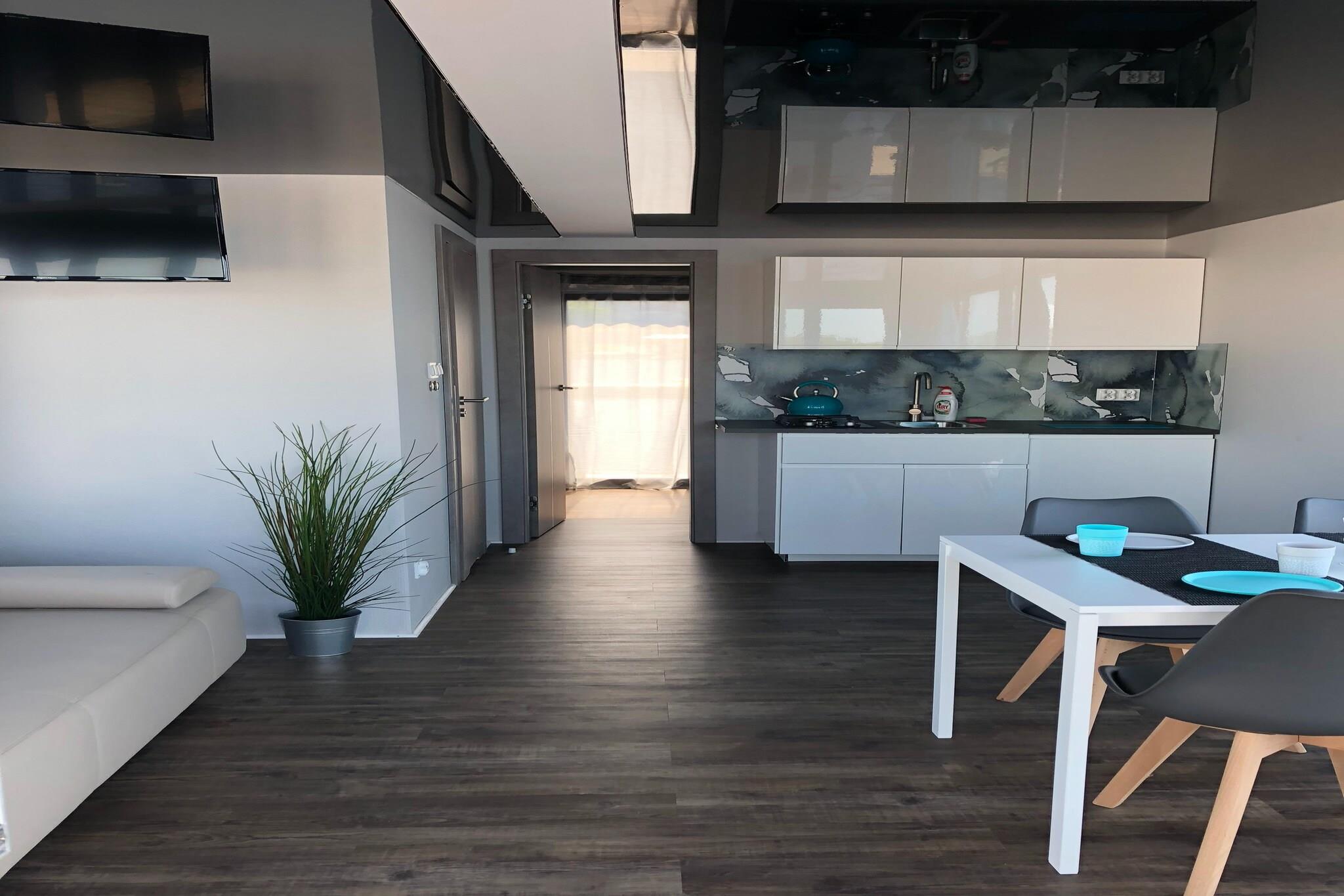 Wir laden Sie ein, einen unvergesslichen Urlaub in einem komfortablen Haus am Wasser zu verbringen. Es wurde mit Blick auf Komfort und Entspannung entworfen. Seine einzigartige Lage am Wasser schafft eine unvergessliche Atmosphäre und ermöglicht es Ihnen, die Ruhe der Natur und den Charme eines Badeortes zu genießen. Im Erdgeschoss des Hauses befindet sich eine überdachte Terrasse mit Gartenmöbeln, die zusätzlichen Raum zum Entspannen und für Treffen im Freien bietet. Es ist der perfekte Ort für einen Morgenkaffee oder einen Abenddrink mit Blick auf das Wasser. Es besteht die Möglichkeit, vor Ort einen Angelschein zu erwerben – 100 PLN/Person/Aufenthalt. Dziwnów ist eine der meistbesuchten Städte am Meer. Eine der größten Attraktionen ist der breite und saubere Strand. Es ist ein perfekter Ort zum Sonnenbaden und Bewundern des Meeres sowie zum Wandern. Der Strand ist von Dünen umgeben, die mit seltener Vegetation bedeckt sind. Interessant ist, dass das Meerwasser in dieser Region nicht durch Industrieverschmutzung belastet ist und als das sauberste in der gesamten Region Pommern gilt. Dziwnów ist ein idealer Ort für Wassersport. Eine Alternative zum Wassersport sind Kreuzfahrten auf Kreuzfahrtschiffen oder Motorbooten. Dziwnów ist auch ein Paradies für Angler, die sowohl in der Ostsee als auch in der Kamienski-Lagune angeln können. Interessanterweise ist das Wasser in der Lagune manchmal salzig, da sich das Meerwasser bei starkem Wind in Richtung Lagune zurückzieht, anstatt tief ins Meer zu gelangen. Deshalb können wir in der Stadt Salzwasser- und Süßwasserfischarten fangen. Vier Kilometer von Dziwnów entfernt, in Wrzosowo, befindet sich der Baltische Dinosaurierpark. Es ist ein idealer Ort für die ganze Familie, der sich auf aktive Erholung im Freien konzentriert. Neben dem Lehrpfad mit beeindruckenden Dinosaurierfiguren gibt es auch einen Mini-Zoo in Form einer Safari, in dem unter anderem Alpakas, Lamas, Strauße, Meerschweinchen, Ziervögel und sogar ein weißes Känguru aus Australien leben.