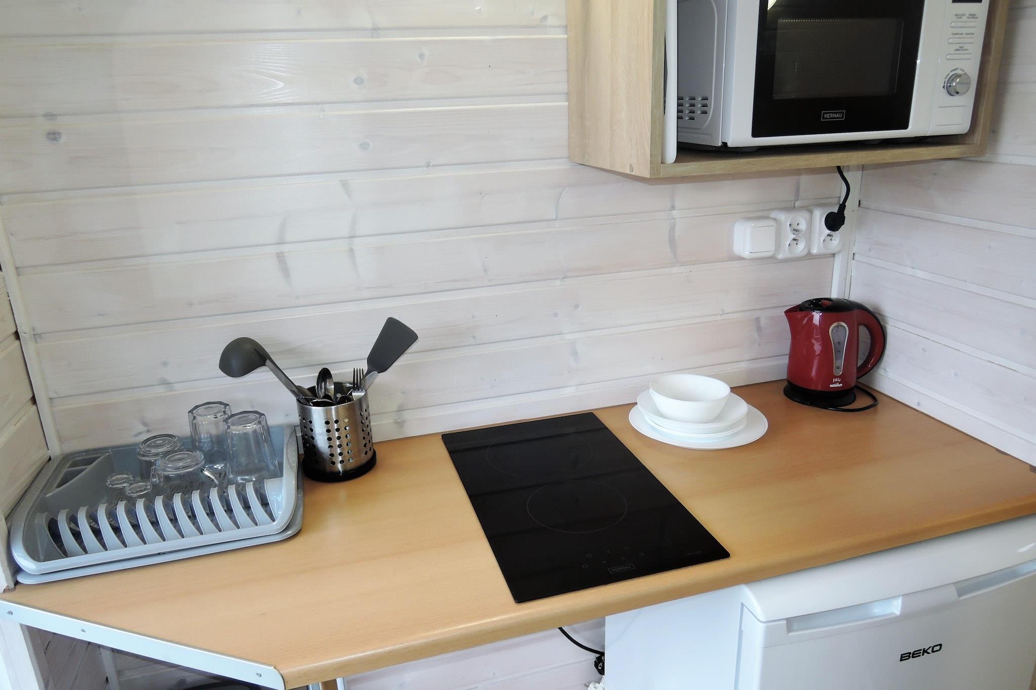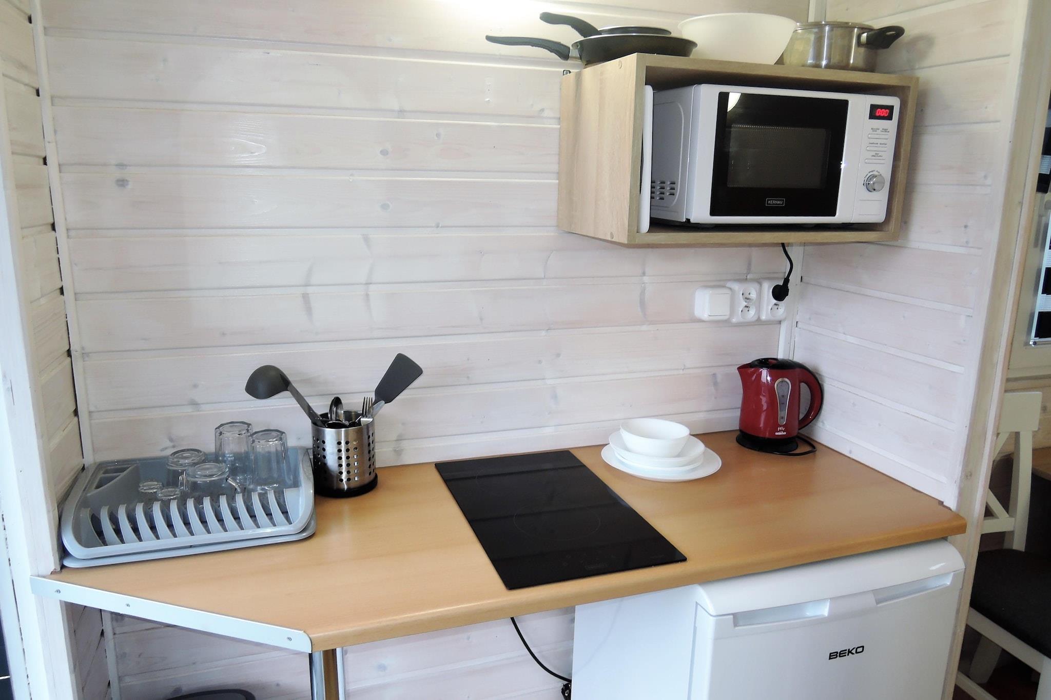 Parterre: (Kochnische(Wasserkocher, Kochherd(2 Kochplatten, elektrisch), Mikrowelle, Kühlschrank), Wohn-/Schlafzimmer(Doppelbett oder 2 Einzelbetten, TV(Satellit, Deutsch Fernsehsender), Esstisch), Badezimmer(Dusche, Waschbecken, Toilette)) Terrasse, Garten(Gemeinschaftliche Nutzung mit anderen Gästen, umzäunt, angelegt, 3400 m2), Gartenmöbel, Grill, Sandkasten, Spielgeräte, Rutsche, Tischfußball, Hängematte, Gartenhaus