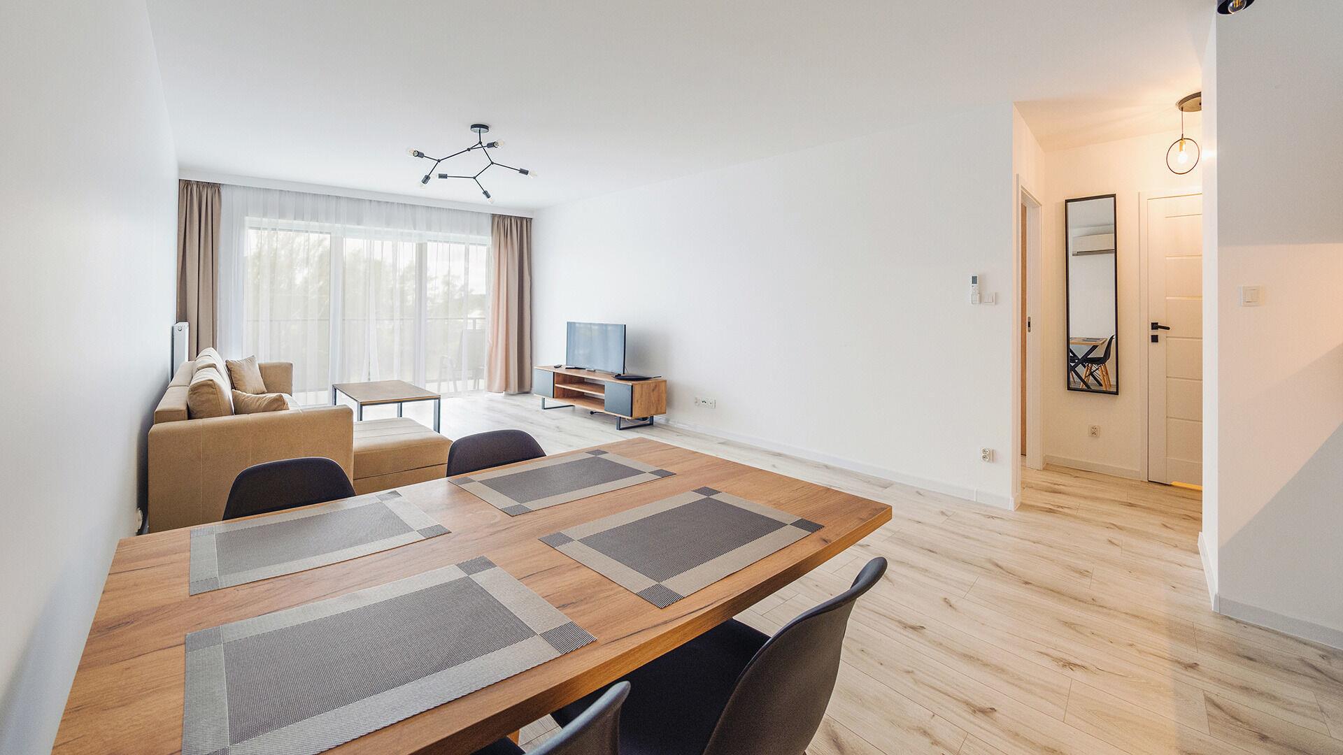 Zu den gewählten Apartments darf man mit dem Hund ankommen. Die zusätzlichen Kosten des Aufenthalts mit einem vierbeinigen Freund betragen 100 PLN (Einzelgebühr). Die Gäste, die den Aufenthalt mit dem Hund planen, bitten wir um eine frühere Kontaktaufnahme mit unserem Service im lokalen Büro.