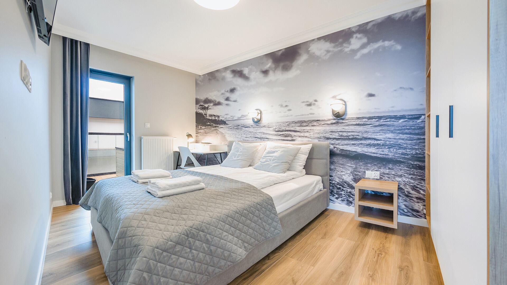 Nur 100 Meter trennen die Apartments vom breiten, sandigen Strand – ideal für Sonnenanbeter ebenso wie für ausgedehnte Spaziergänge entlang der Küste. Das Rauschen der Wellen und die frische Meeresbrise schaffen eine unvergleichliche Atmosphäre, die zur vollkommenen Entspannung einlädt.