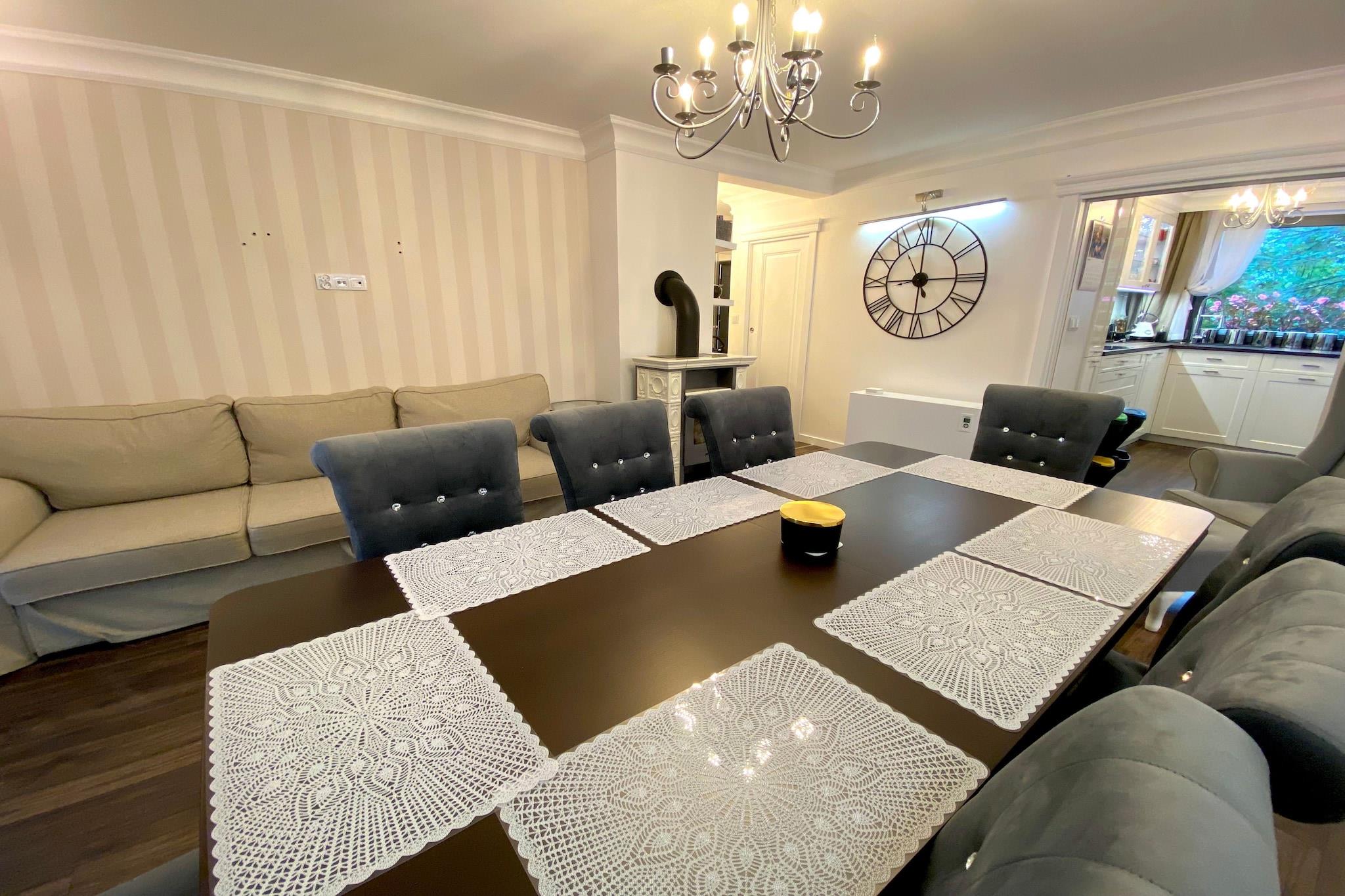 Modern eingerichtetes Ferienhaus in Toplage. Ihr XXL-Feriendomizil verfügt über 7 Schlafzimmer und 5 Badezimmer und ist bestens geeignet für eine große Familie oder eine Gruppe. Ein Hund ist hier auch herzlich willkommen. Hobby-Köche freuen sich über die Top ausgestatte Küche und für die Kinder ist der tolle Spielplatz die Attraktion des Hauses. Der großzügige Außenbereich ist sehr gepflegt und bietet genügend Sitzmöglichkeiten für alle Gäste. Ein weiteres Highlight ist der Pool (Aufstellbecken), der an heißen Tagen für Abkühlung sorgt. Der touristische Bade- und Fischerort Dziwnowek liegt zusammen mit dem Seebad Dziwnów nahe der Insel Wolin. Neben breiten Sandstränden bietet der Ort verschiedene Restaurants, Bars und Geschäfte sowie Ausflugsmöglichkeiten mit Booten auf die Ostsee oder nach Kamien Pomorski (ehemals Cammin). Auch Kuranwendungen werden im Ort angeboten und sorgen für erholsame Urlaubstage.
