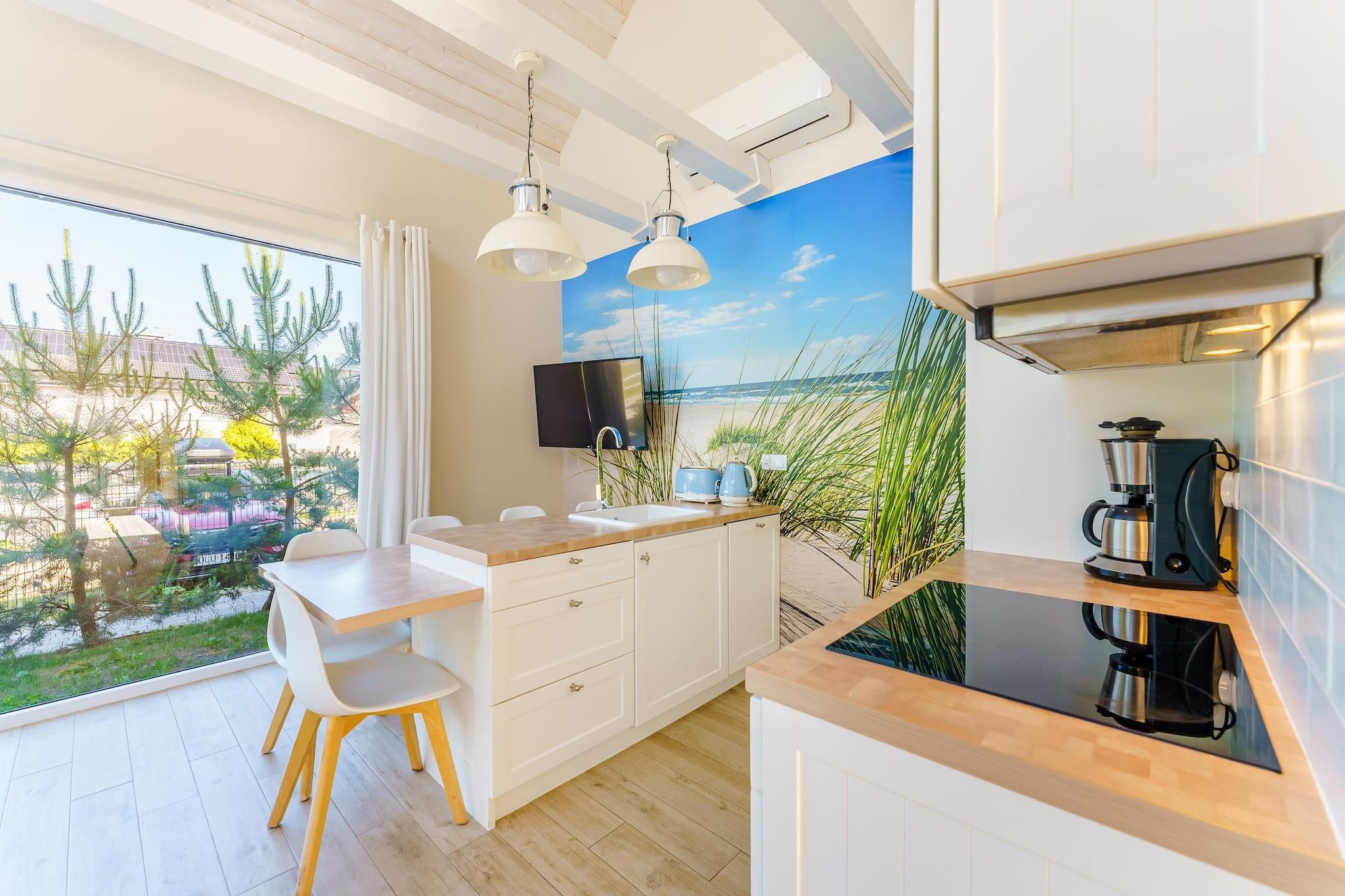 Das Resort bietet moderne Ferienhäuser mit privater Sauna in hervorragender Lage (strandnah, ruhige Gegend). Jedes Haus verfügt über eine Terrasse und einen privaten Garten. Kinder können sich auf dem kleinen Spielplatz austoben. Komfortable, zweistöckige Häuser mit Klimaanlage (mit Kühl- und Heizfunktion). Sie bieten 8 Personen komfortable Entspannung. Im Erdgeschoss gibt es ein geräumiges Wohnzimmer, das mit einer gut ausgestatteten Küche verbunden ist, sowie ein Schlafzimmer mit Doppelbett, ein Badezimmer mit Dusche (es gibt eine Waschmaschine) und eine private Sauna. Im Obergeschoss befindet sich ein zweites Schlafzimmer. Die Terrasse ist mit einem Grill, Gartenmöbeln, einem Sichtschutz und Liegestühlen ausgestattet. WLAN ist verfügbar. Handtücher sind auf Anfrage erhältlich (gegen Aufpreis). Innerhalb des umzäunten Grundstücks befindet sich ein Spielplatz für Kinder (Sandkasten, Schaukel, Rutsche). Für jedes Cottage steht ein Parkplatz zur Verfügung. Im Preis Ihres Aufenthalts inbegriffen: Bettwäsche, private Sauna, Wasserverbrauch, Internet, 1 Parkplatz. Die hervorragende Lage ermöglicht einen direkten und schnellen Zugang zum wunderschönen, breiten Strand. Nur 100 Meter vom Ferienzentrum entfernt befindet sich außerdem der längste Radweg Polens (R-10). Auch die benachbarte Stadt Kolobrzeg bietet zahlreiche Sehenswürdigkeiten und ist mit dem Fahrrad, öffentlichen Verkehrsmitteln oder dem Auto gut zu erreichen. Grzybowo ist eine Küstenstadt, die aufgrund ihres wunderbaren Charakters und ihrer Lage zwischen Kolobrzeg und Dzwirzyno oft von Touristen gewählt wird. Beide Städte bieten viele Sehenswürdigkeiten. Während Ihres Aufenthaltes in unserem Resort können Sie an den schönen Sandstrand gehen und die wunderbare, jodreiche Ostsee und die saubere Luft genießen. Für aktive Menschen gibt es einen Küstenradweg, der entlang des Küstenstreifens verläuft, die einzige Attraktion dieser Art in Polen. Darüber hinaus gibt es gastronomische Einrichtungen, Unterhaltungsmöglichkeiten und Geschäfte.
