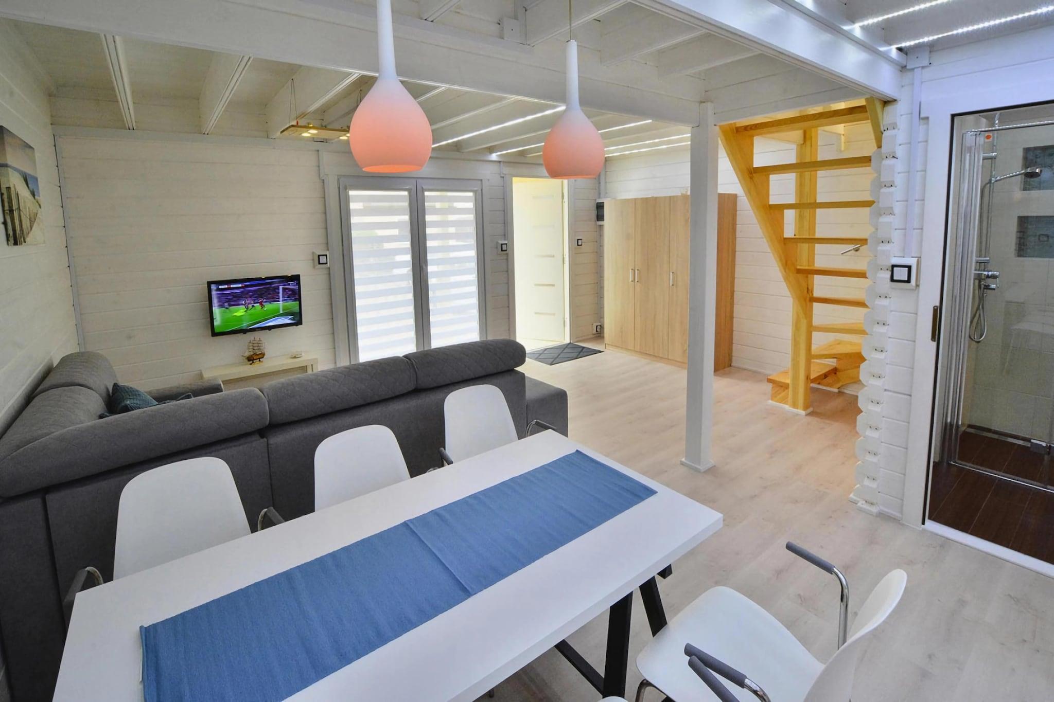 Das kleine Resort bietet 2 komfortable zweistöckige Häuser in ausgezeichneter Lage (ruhige Nachbarschaft, nahegelegene Bar, wo Sie ein leckeres Abendessen bestellen oder Kaffee trinken können). Jedes Haus verfügt über eine überdachte Terrasse und einen Balkon im ersten Stock. Zwischen den Häusern befindet sich ein massiver gemauerter Grillkamin mit Räucherkammer (den Gästen beider Sommerhäuser zur Verfügung). Die Häuser verfügen über eine Klimaanlage mit Kühl- und Heizfunktion. Jedes Haus besteht aus einem Wohnzimmer mit gut ausgestatteter Küche, 2 separaten Schlafzimmern (im ersten Stock) und einem Badezimmer mit Dusche. Die Terrasse ist mit einem Grill, Gartenmöbeln, einem Sonnenschirm und Liegestühlen ausgestattet. WLAN ist verfügbar. Handtücher auf Anfrage (gegen Gebühr). Im Preis des Aufenthalts sind enthalten: Bettwäsche, Wasserverbrauch, Endreinigung, Internet, Babybett (Reservierung erforderlich). Die hervorragende Lage ermöglicht einen schnellen Zugang zum Strand. In der Nähe verläuft der längste Radweg Polens (R-10). Auch die Nachbarstadt Kolobrzeg bietet viele Sehenswürdigkeiten und ist mit dem Fahrrad, öffentlichen Verkehrsmitteln oder dem Auto erreichbar. Grzybowo ist eine Küstenstadt, die aufgrund ihres intimen Charakters und ihrer Lage zwischen Kolobrzeg und Dzwirzyno bei Touristen sehr beliebt ist. Beide Städte bieten viele Sehenswürdigkeiten. In Kolberg können Sie den Hafen, die Seebrücke und die Strandpromenade besuchen, die das ganze Jahr über mit vielen verschiedenen Veranstaltungen und Attraktionen bereichert werden. Dzwirzyno ist eine typische Touristenstadt. Der Ort ist wegen des Resko-Sees einen Besuch wert, wo Sie Ihre Zeit aktiv verbringen können, indem Sie verschiedene Arten von Wasserausrüstung mieten. Die Hauptattraktion am See ist das Windsurfen, da der See flach ist und der Wind günstig ist.