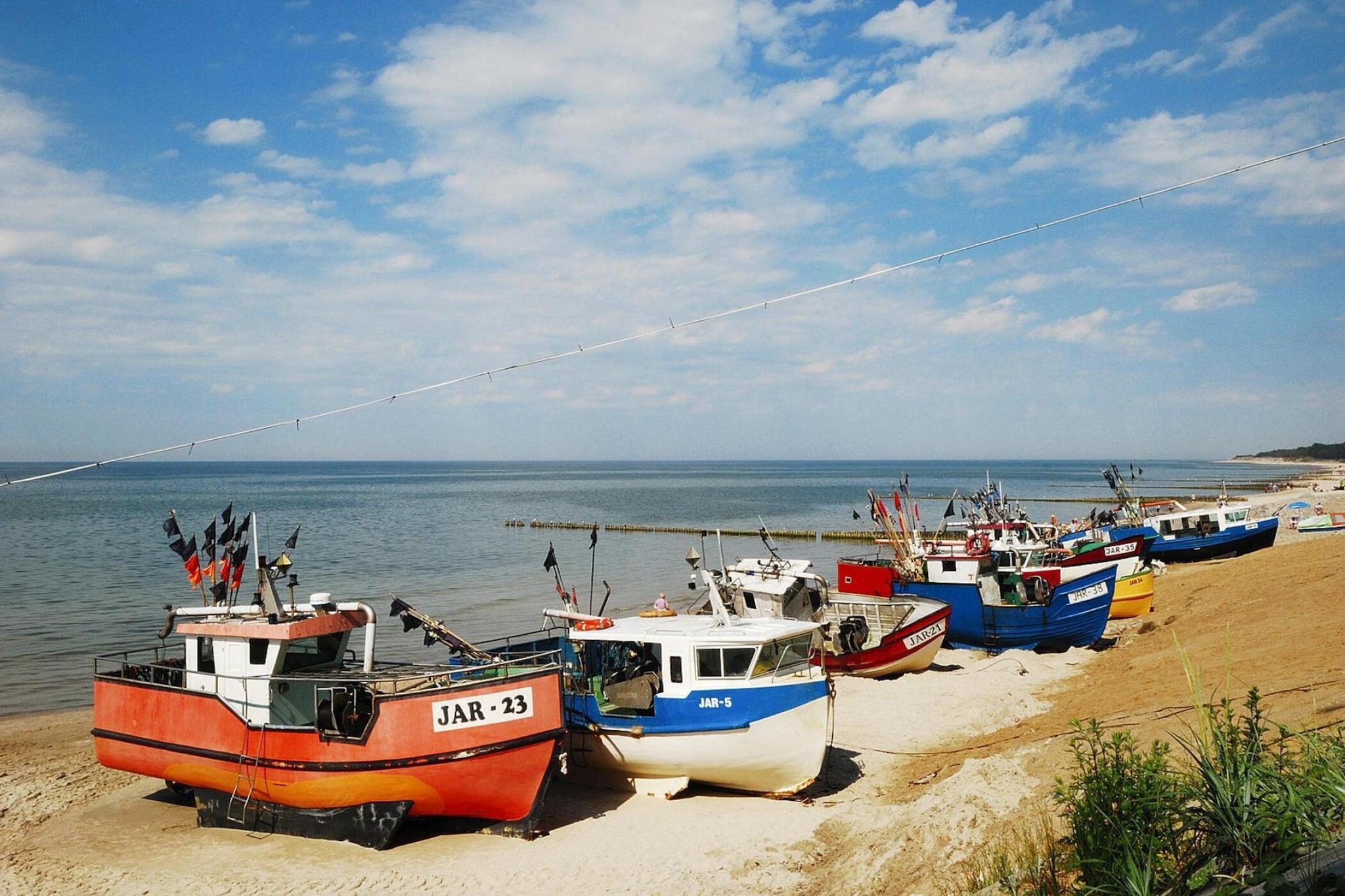 Angenehme Lage, in einer ruhigen Gegend, 900 m vom Meeresstrand entfernt. Das Ortszentrum ist nur wenige Schritte entfernt und dort finden Sie zahlreiche Restaurants, Cafés und andere gastronomische Einrichtungen. Das komfortable, zweistöckige Ferienhaus liegt auf einem umzäunten, gepflegten Grundstück. Es ist so konzipiert, dass es bequem Platz für 5 Personen bietet. Im Erdgeschoss gibt es ein geräumiges Wohnzimmer, das mit der Küche verbunden ist, und ein Badezimmer mit Dusche. Das Wohnzimmer verfügt über ein 2-Sitzer-Sofa, einen Fernseher und einen Tisch mit Stühlen. Im Obergeschoss befinden sich 2 separate Schlafzimmer. Elektroheizung. Das Haus verfügt über eine überdachte Terrasse mit Gartenmöbeln, Liegestühlen und Grillzubehör. WLAN ist verfügbar. Vor Ort gibt es Zugang zu einer Waschmaschine (gegen Gebühr). Für die jüngsten Gäste gibt es einen Spielplatz. Es gibt sichere Parkplätze. Im Preis des Aufenthalts sind enthalten: Bettwäsche, Handtücher, Wasser- und Stromverbrauch, Internet, Parkplatz, Endreinigung. Jaroslawiec ist ein ruhiger, kleiner Sommerferienort an der zentralen Küste, in der Nähe von Darlowo und Ustka. Ein wunderbares Klima und schöne Landschaften, Kiefernwälder, klares Wasser im Meer, eine Klippe am Meer – das sind die Vorteile von Jaroslawiec, die diese Stadt jedes Jahr viele Touristen anziehen lassen. Sehenswürdigkeiten in der Umgebung: Der Strand in Jaroslawiec ist ideal für Touristen, die sich gerne an nicht überfüllten Orten sonnen. Am Strand kann man bunte Fischerboote sehen und goldenen Bernstein finden. In Jaroslawiec befindet sich die größte Klippe an der Mittelküste – ihre Länge beträgt etwa 2 km und die Höhe beträgt bis zu 24 m. Entlang der Klippenküste gibt es viele Aussichtspunkte, von denen aus Sie den wunderschönen Strand und die saubere Ostsee bewundern können.