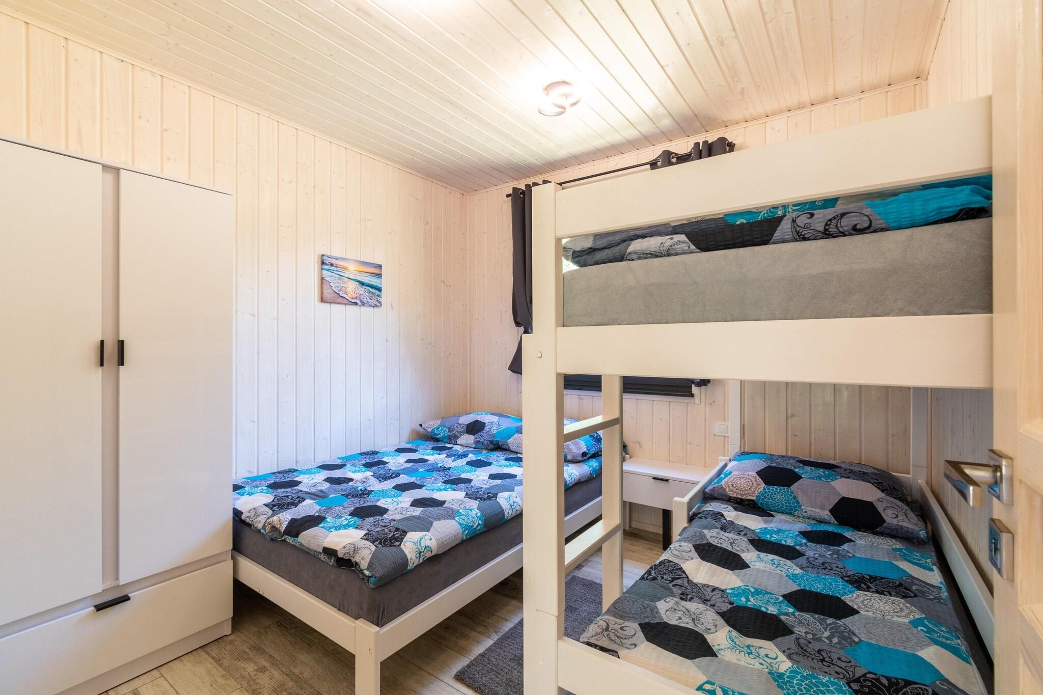 Parterre: (offene Küche(Kochplatte(4 Kochplatten, Induktion), Wasserkocher, Kaffeemaschine, Kühl-/Gefrierkombination), Wohn/Esszimmer(Doppelschlafcouch, TV(Kabel, Flatscreen, Satellit, Deutsch Fernsehsender), Esstisch, Kaminofen), Schlafzimmer(Doppelbett), Schlafzimmer(Doppelbett, Etagenbett), Badezimmer(Dusche, Waschbecken, Toilette)) Rezeption, Internet, Billard, Tischfußball, Fahrradverleih, Indoor Spielraum, Spielplatz, Liegewiese, Whirlwanne(Gemeinschaftliche Nutzung mit anderen Gästen, gegen Gebühr), Heizung(elektrisch, Holz), Terrasse(überdacht), Garten(Gemeinschaftliche Nutzung mit anderen Gästen, umzäunt, 6000 m2), Gartenmöbel, Liegen, Grill(Holzkohle), Parkplatz, Trampolin(Gemeinschaftliche Nutzung mit anderen Gästen), Sandkasten(Gemeinschaftliche Nutzung mit anderen Gästen), Rutsche(Gemeinschaftliche Nutzung mit anderen Gästen), Hochstuhl, Schaukel, Babybett (kostenlos)