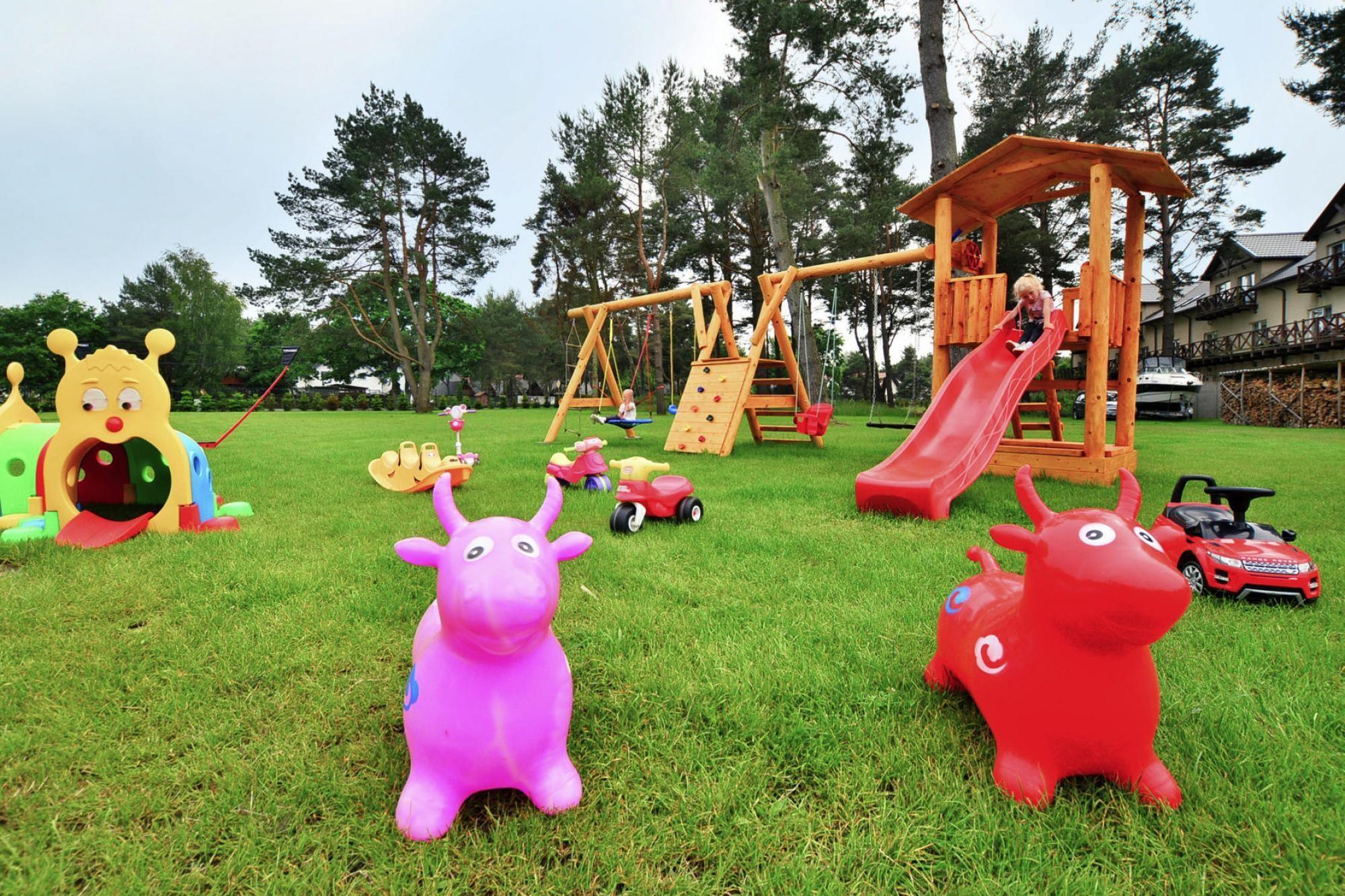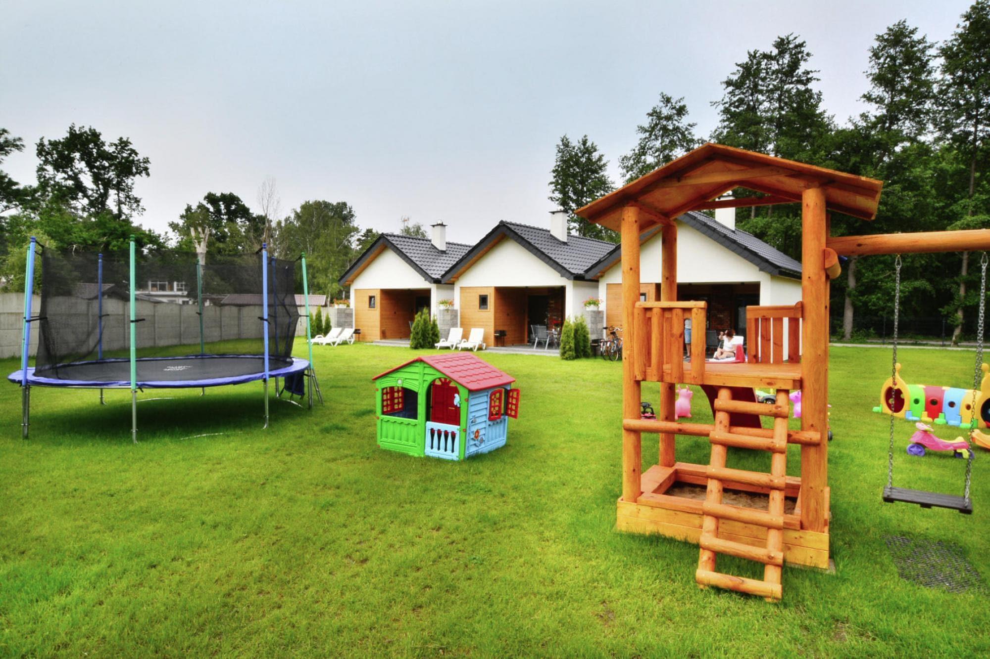 Ein familienfreundliches Ferienresort mit einem sicheren, gepflegten und eingezäunten Gelände bietet viel Platz für Familienspiele und Spaß. In der Nähe befinden sich ein Wald und ein attraktiver Wasserpark. Die komfortablen, einstöckigen Ferienhäuser verfügen über ein Wohnzimmer mit Küche, ein Badezimmer mit Dusche und zwei separate Schlafzimmer. Das Wohnzimmer ist mit einem Doppelschlafsofa, einem Kamin, einem Esstisch und einem Fernseher ausgestattet. Die Ferienhäuser verfügen über überdachte Terrassen mit Gartenmöbeln. Grillmöglichkeiten sind vorhanden. Neben der Kaminheizung können auch Elektroheizungen gemietet werden. WLAN ist verfügbar. Das eingezäunte Gelände bietet einen attraktiven Spielplatz mit einem großen Trampolin und Parkplätze. Es gibt auch ein großes Spielzimmer mit Billard, Tischfußball und Brettspielen. Gegen eine zusätzliche Gebühr können Gäste den Whirlpool nutzen und ein Fahrrad mieten. Im Preis inbegriffen sind: Bettwäsche, Handtücher, Wasser, Brennholz, Internet, ein Babybett und ein Hochstuhl. Jaroslawiec ist ein ruhiger Sommerferienort an der Mittelküste, in der Nähe von Darlowo und Ustka. Der örtliche Strand ist ideal für Touristen, die ein Sonnenbad in einer ruhigen Umgebung genießen möchten. Bunte Fischerboote und goldener Bernstein sind am Strand zu sehen. Eine der größten Attraktionen von Jaroslawiec ist der Wasserpark Tropicana (ca. 0,5 km vom Resort entfernt) mit Innen- und Außenpools, Whirlpool, Saunen sowie umfassenden Wellness- und Spa-Einrichtungen. Ein interessantes Wahrzeichen von Jaroslawiec ist der Leuchtturm. Er wurde aus roten und glasierten Ziegeln in kreisförmigem Grundriss erbaut, wobei jedes Stockwerk durch ein dekoratives Gesims akzentuiert wird. Der 33 Meter hohe Balkon bietet einen Blick auf das Meer und zwei große Küstenseen. Der internationale Radweg R-10 führt durch Jaroslawiec und bietet interessante und bequeme Radtouren zu den benachbarten Küstenorten Wicie, Jezierzany und Darlówko.