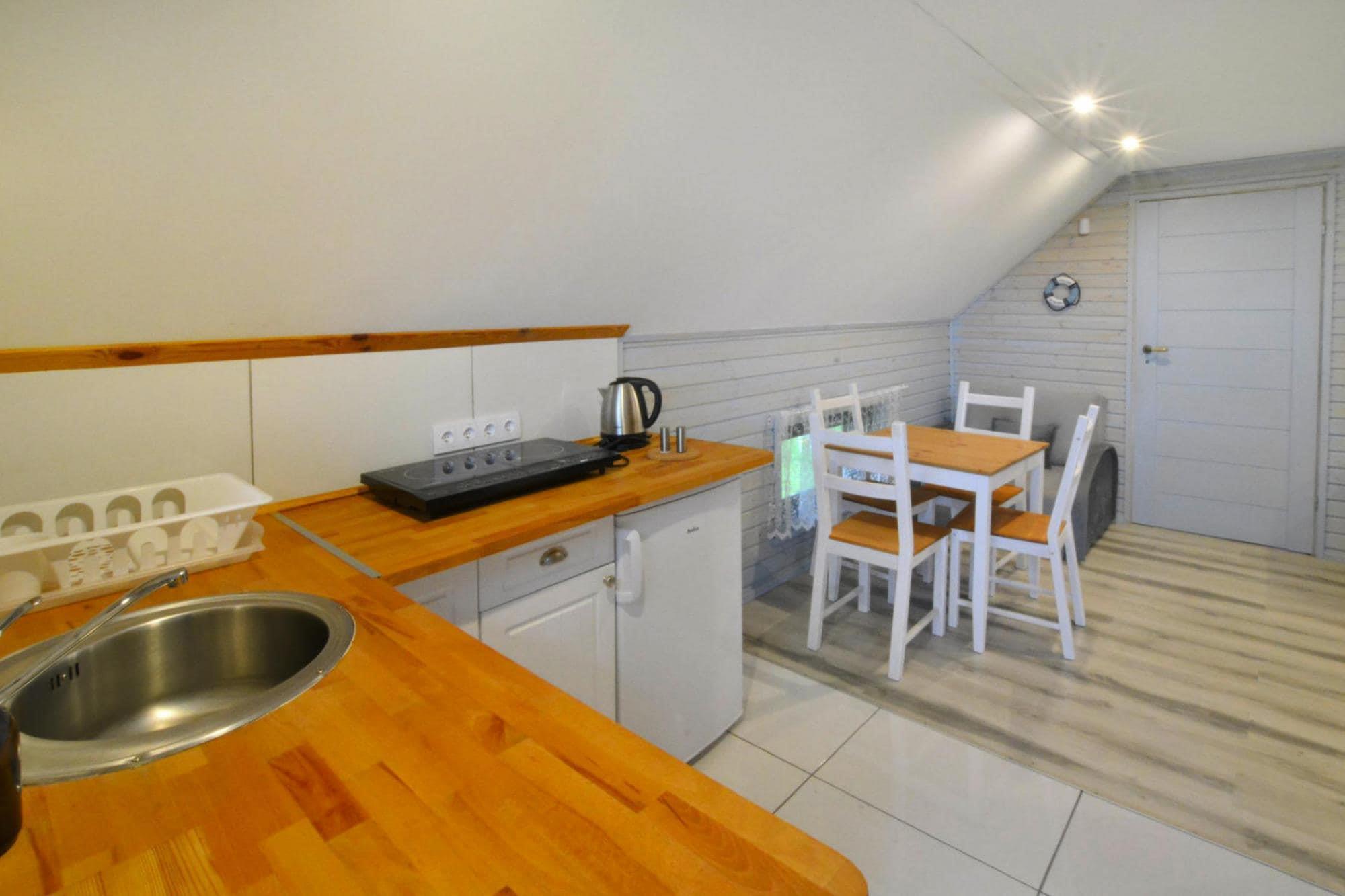 Ein gemütliches Resort am Rande des Sommerferienortes Jezierzany. Perfekt zum Entspannen. Der schöne Meeresstrand ist ca. 3 km entfernt. Der Wicko-See ist nur 1 km entfernt, sodass Sie Ihre Zeit mit Ausflügen ans Meer oder zum See abwechseln können, wo Sie angeln, ein Boot mieten und schwimmen können. Der Eigentümer der Anlage wohnt auf dem Gelände. Darüber hinaus wurde für Urlauber eine Wohnung im ersten Stock eines kleinen Gebäudes vorbereitet. Es gibt auch 3 Ferienhäuser. Eine komfortable und gemütliche Ferienwohnung besteht aus einem Wohnzimmer mit Küche, einem geräumigen Schlafzimmer und einem Badezimmer mit Dusche. Die Wohnung verfügt über eine überdachte Terrasse mit Gartenmöbeln. WLAN ist verfügbar. Die Waschmaschine ist öffentlich zugänglich (bitte an der Rezeption anmelden). Im umzäunten Bereich des Ferienzentrums gibt es einen Parkplatz und einen Spielplatz. Es gibt auch einen Grillplatz (mit entsprechender Ausrüstung). Im Preis des Aufenthalts sind enthalten: Bettwäsche, Wasserverbrauch, Parkplatz, Internet, Aufenthalt mit einem Hund (max. 1), Endreinigung, Babybett und Hochstuhl (vorherige Reservierung erforderlich). Jezierzany ist ein ruhiges, kleines Feriendorf an der zentralen Küste, in der Nähe von Jaroslawiec, Darlowo und Ustka. Ein wunderbares Klima und schöne Landschaften, Pinienwälder, sauberes Meerwasser und eine Klippe am Meer sind die Vorteile der Gegend. Eine reichhaltige gastronomische Basis bietet das nahegelegene Jaroslawiec, 3 km entfernt. Der Strand am Meer ist perfekt für Touristen, die sich gerne an nicht überfüllten Orten sonnen. Am Strand kann man bunte Fischerboote sehen und goldenen Bernstein finden. Nach der kürzlichen Renovierung ist der Strand sehr breit und schön.