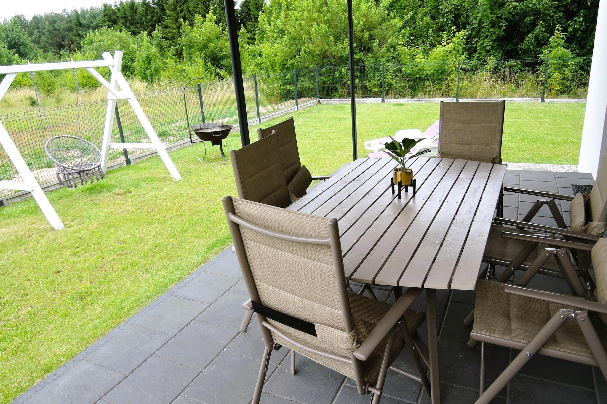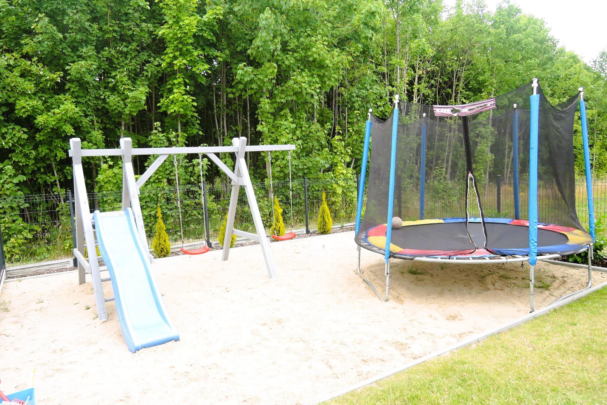 Ein komfortables, modernes und geräumiges Ferienhaus – perfekt für einen erholsamen Aufenthalt mit einer großen Familie oder einer Gruppe von Freunden. Das Anwesen verfügt über vier komfortable Schlafzimmer und zwei funktionale Badezimmer. Die voll ausgestattete Küche ermöglicht die Zubereitung von Familienmahlzeiten und bietet alles, was Sie für alltägliche kulinarische Abenteuer benötigen. Für unsere jüngsten Gäste haben wir einen Spielplatz eingerichtet. Draußen laden die Terrasse und die Gartenmöbel zum Entspannen ein. Ein Grill lädt zum Zubereiten köstlicher Mahlzeiten im Freien ein. Für Ihren Komfort bieten wir Internetzugang. Parkplätze stehen direkt am Haus zur Verfügung. Eine Einzelgarage sorgt für Komfort und Sicherheit Ihres Fahrzeugs. Kolczewo ist ein charmantes Dorf auf der Insel Wolin, umgeben von Seen und Wäldern – ein idealer Urlaubsort für alle, die dem Trubel der Stadt entfliehen möchten. In der Umgebung gibt es viele Seen, darunter den großen Kolczewo-See südlich des gleichnamigen Dorfes. Der ausgedehnte Koprowo-See erstreckt sich etwa zweieinhalb Kilometer nordöstlich. Im Sommer gibt es am Kolczewo-See eine Wasserstation, an der man Tretboote, Boote und Kajaks mieten kann, um sich aktiv am Wasser zu erholen und den Charme dieser malerischen Umgebung zu genießen.