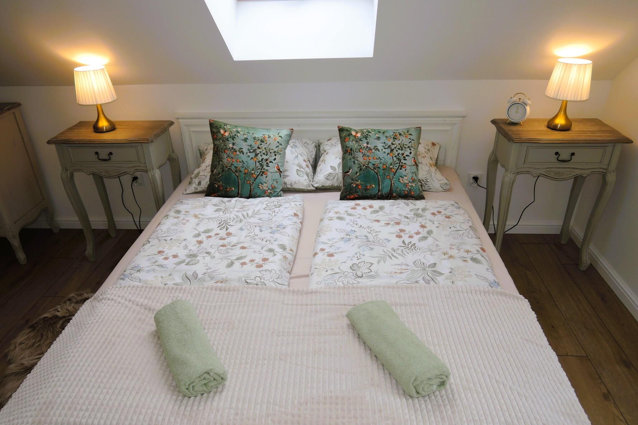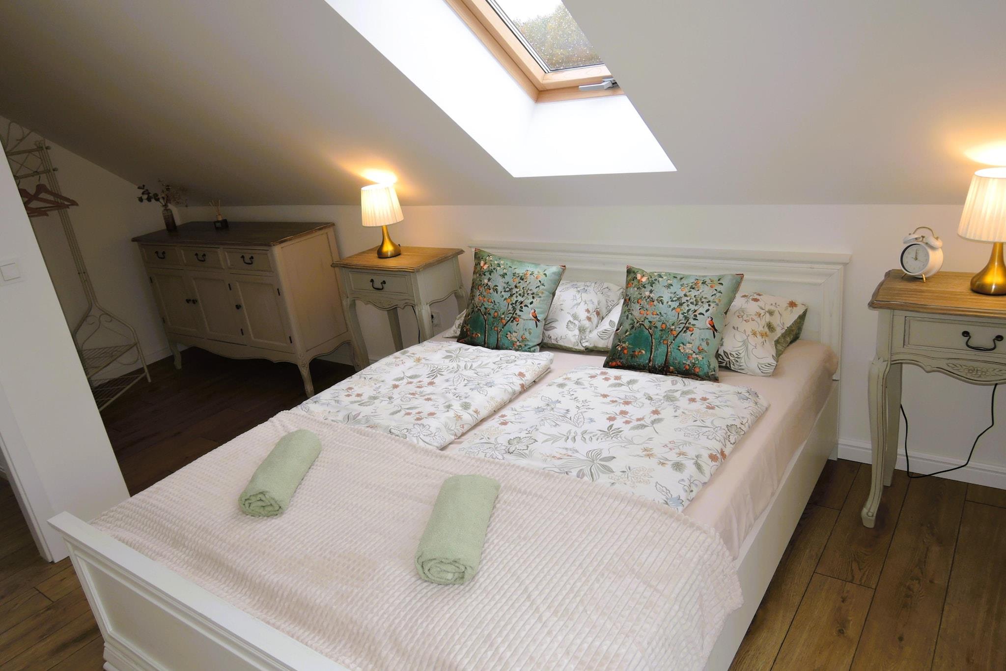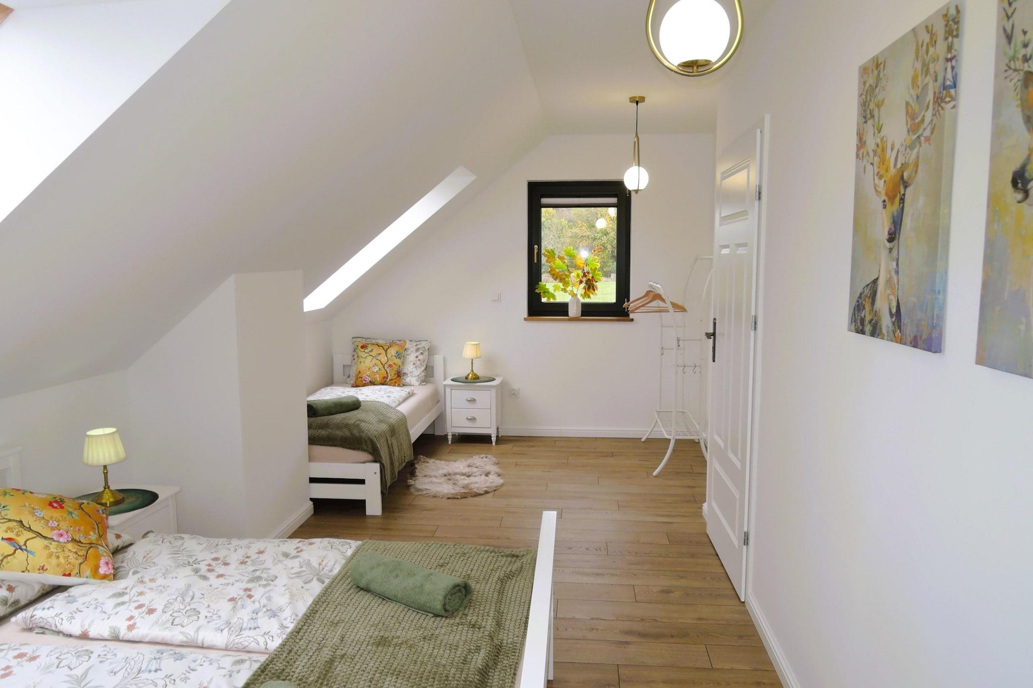 Wir bieten ein komfortables, modernes Ferienhaus, ideal für 4–6 Personen. Im Erdgeschoss finden Sie eine geräumige, voll ausgestattete Küche, ein gemütliches Wohnzimmer und ein funktionales Badezimmer. Im ersten Stock laden zwei gemütliche Schlafzimmer zum Verweilen ein. Das Haus ist von einem großen, gepflegten Garten umgeben. Gartenmöbel, ein Grill und zwei Parkplätze stehen Ihnen zur Verfügung. Das gesamte Grundstück ist umzäunt und bietet somit Privatsphäre und Sicherheit. Die friedliche und ruhige Umgebung macht dieses Haus zum perfekten Ort zum Entspannen und Erholen. Auch Ihre vierbeinigen Freunde sind herzlich willkommen – ob Hund oder Katze! Kolczewo ist ein charmantes Städtchen auf der Insel Wolin, umgeben von malerischen Wäldern und Stränden, die jedes Naturliebhaberherz höherschlagen lassen. Es ist der ideale Ort für eine erholsame Auszeit vom Großstadttrubel, wo Sie Ruhe und Frieden genießen können. Kolczewo bietet zahlreiche Attraktionen wie wunderschöne Strände, Radwege und vielfältige Möglichkeiten für aktive Freizeitgestaltung in der Natur.