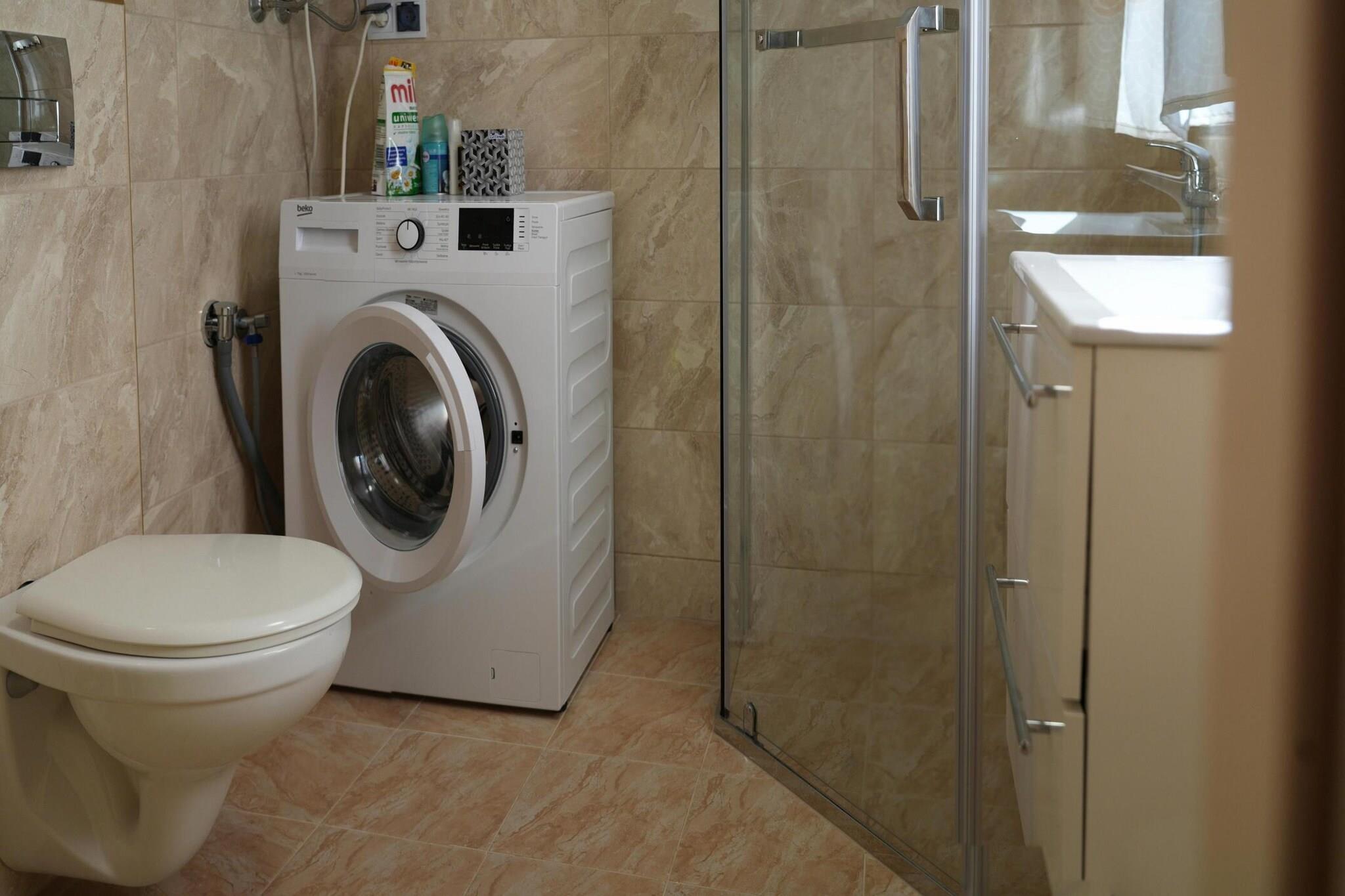 Parterre: (Kochnische(Wasserkocher, Kochendwasserhahn, Toaster, Kochherd(2 Kochplatten, elektrisch), Espressomaschine, Kühl-/Gefrierkombination), Badezimmer(Dusche, Waschbecken, Toilette, Waschmaschine)) In der 1. Etage: (Wohn-/Schlafzimmer(Doppelbett), Schlafzimmer(Einzelbett, TV(Deutsch Fernsehsender))) Grill, Balkon, Terrasse, Gartenmöbel, Parkplatz, Babybett (kostenlos)