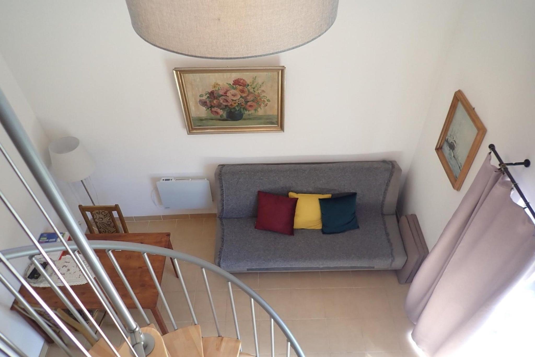 Parterre: (offene Küche(Wasserkocher, Kochendwasserhahn, Toaster, Kochherd(2 Kochplatten, elektrisch), Espressomaschine, Kühl-/Gefrierkombination), Wohn-/Schlafzimmer(Doppelschlafcouch, TV(Deutsch Fernsehsender), Esstisch), Badezimmer(Dusche, Waschbecken, Toilette)) In der 1. Etage: (Schlafzimmer(Einzelbett, Doppelbett)) Grill, Balkon oder Terrasse, Gartenmöbel, Parkplatz, Babybett (kostenlos)