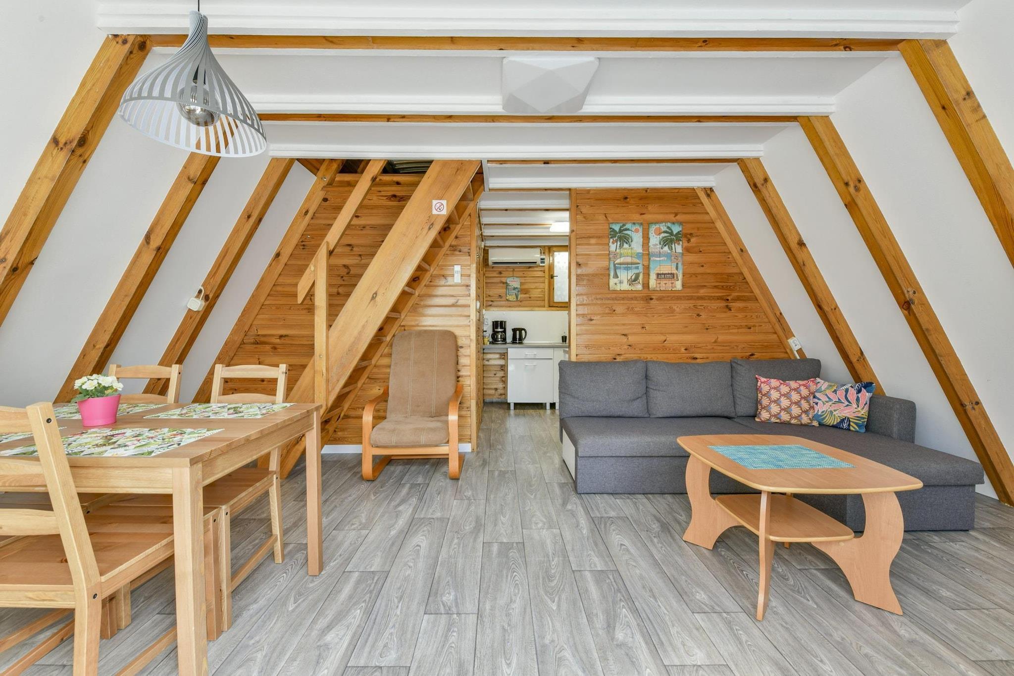 Zwei gepflegte zweistöckige Holzhäuser in einem gemütlichen Ferienort (eingezäuntes Gelände) am Stadtrand von Kolberg. Hier können die Gäste mit Ruhe und Frieden rechnen, doch die Sehenswürdigkeiten von Kolobrzeg liegen zum Greifen nah. Im gepflegten Garten stehen den Gästen Gartenmöbel, ein Grill und Hängematten zur Verfügung. Jedes Haus ist zweistöckig und verfügt über eine überdachte Terrasse. Im Erdgeschoss gibt es ein Wohnzimmer mit TV (polnische und deutsche Programme), eine gut ausgestattete Küche und ein Badezimmer mit Dusche. Im Obergeschoss befinden sich 2 separate Schlafzimmer. Es gibt eine Klimaanlage (Heizung und Kühlung). WLAN ist verfügbar. Im Preis des Aufenthalts sind enthalten: Bettwäsche, Handtücher, Wasserverbrauch, Internet, Parkplatz, Babybett (Reservierung erforderlich), Klimaanlage. Kolberg ist nicht nur ein beliebter Badeort, sondern auch ein Kurort mit natürlichen Solequellen und heilenden Torfmooren. Der sechs Kilometer lange Sandstrand begeistert jedes Jahr die Gäste und zahlreiche Restaurants und Cafés im Zentrum, in der Altstadt und an der Promenade laden stets zu Spaß und Entspannung ein. Zu den Reichtümern von Kolobrzeg gehören vor allem zahlreiche Denkmäler, ein breiter, renovierter Strand, Schlamm (Vorkommen von Heiltorf), Sole und natürliches Mineralwasser. Die größte Attraktion des Kurortes Kolobrzeg ist zweifellos der breite Sandstrand am Meer. Darüber hinaus gibt es viele Spazierwege im Seepark, entlang der Strandpromenade, am historischen Pier und in der Altstadt. Es lohnt sich, den örtlichen Leuchtturm, das Ozeanarium, den Seehafen und die Kathedrale zu besuchen. Attraktionen in der Umgebung: Für Familien mit Kindern empfehlen wir den Besuch des Vergnügungsparks Pomerania Fun Park. Es handelt sich um einen ganzjährig geöffneten Park im Dorf Dygowo (ca. 15 km von Kolobrzeg entfernt). Es bietet zahlreiche Karussells und Trampoline. Es gibt ein Wikingerdorf, einen Mini-Zoo und viele andere Attraktionen.