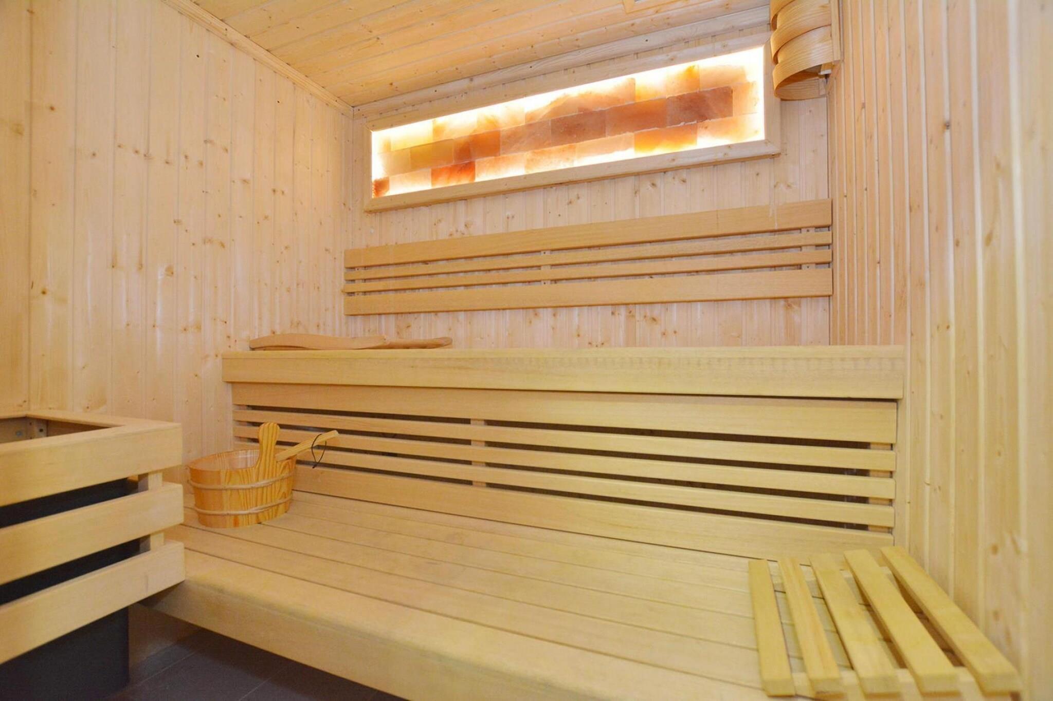 Gemeinsame Trocken- und Dampfsauna, gemeinsamer Fitnessraum, Wohnung mit eigenem, kleinem Garten