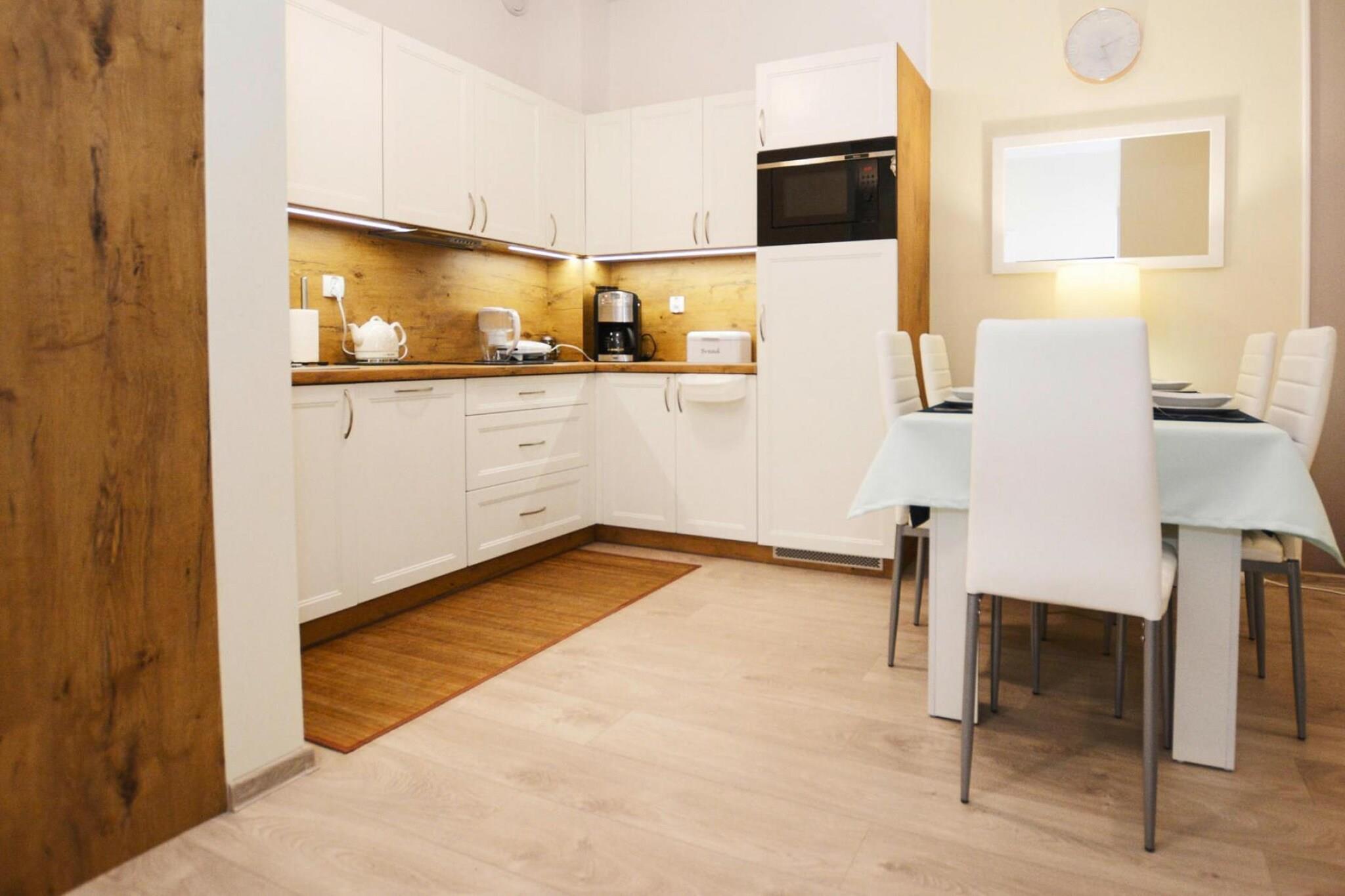 Apartmentkomplex in ruhiger Lage, 1 km vom Meeresstrand entfernt. Die Lage in unmittelbarer Nähe zum Transferzentrum ermöglicht eine hervorragende Kommunikation mit ganz Kolobrzeg sowie anderen Ferienorten in der Region. In der Nähe gibt es einen Fischereistützpunkt und einen Fischmarkt, wo Sie frischen und geräucherten Fisch kaufen können. Komfortable Apartments in einem modernen Gebäude. Jedes besteht aus einem Wohnzimmer (TV, Tisch und Doppelschlafsofa), verbunden mit einer gut ausgestatteten Küche (Geschirrspüler, Kaffeemaschine, Mikrowelle), einem Schlafzimmer und einem Badezimmer (Dusche, Waschmaschine). Zentralheizung. WLAN ist verfügbar. Die Wohnung liegt im Erdgeschoss und verfügt neben der überdachten Terrasse über einen kleinen, privaten Garten mit Gartenmöbeln und Sonnenliegen. Das Zentrum verfügt über einen öffentlichen Saunabereich (Trocken- und Dampfsauna) und einen Fitnessraum (kostenlos). Außerdem ist ein attraktiver Spielplatz vorhanden. Im Preis Ihres Aufenthaltes sind enthalten: Bettwäsche, Handtücher, Strom- und Wasserverbrauch, Sauna- und Fitnessraumbenutzung, Internet. Hochstuhl auf Anfrage erhältlich. Die größte Attraktion von Kolobrzeg ist zweifellos der breite Sandstrand. Es gibt auch viele Wander- und Radwege. Es lohnt sich, den örtlichen Leuchtturm, das Ozeanarium, den Seehafen und die Kathedrale zu besuchen. Für Familien mit Kindern empfehlen wir einen Besuch im Pomerania FunPark. Es handelt sich um einen ganzjährig geöffneten Park im Dorf Dygowo (ca. 15 km von Kolobrzeg entfernt). Es bietet zahlreiche Karussells und Trampoline. Es gibt ein Wikingerdorf, einen Mini-Zoo und viele andere Attraktionen. In Kolobrzeg lohnt sich ein Besuch des Indianerdorfes, wo man die Kulturräume der Ureinwohner Nordamerikas kennenlernen kann. Im Umkreis von 500 m vom Apartmentkomplex befindet sich ein Yachthafen, wo Sie Wasserausrüstung mieten können.