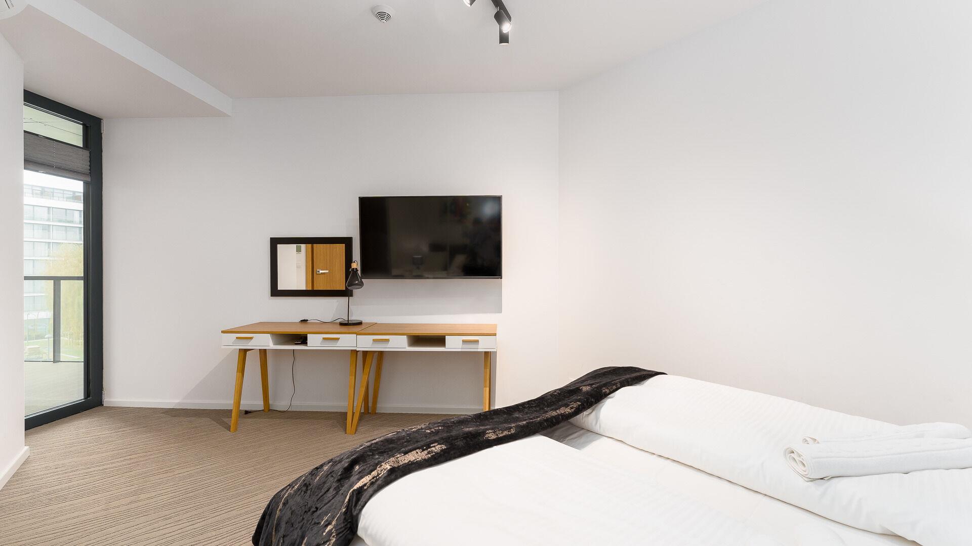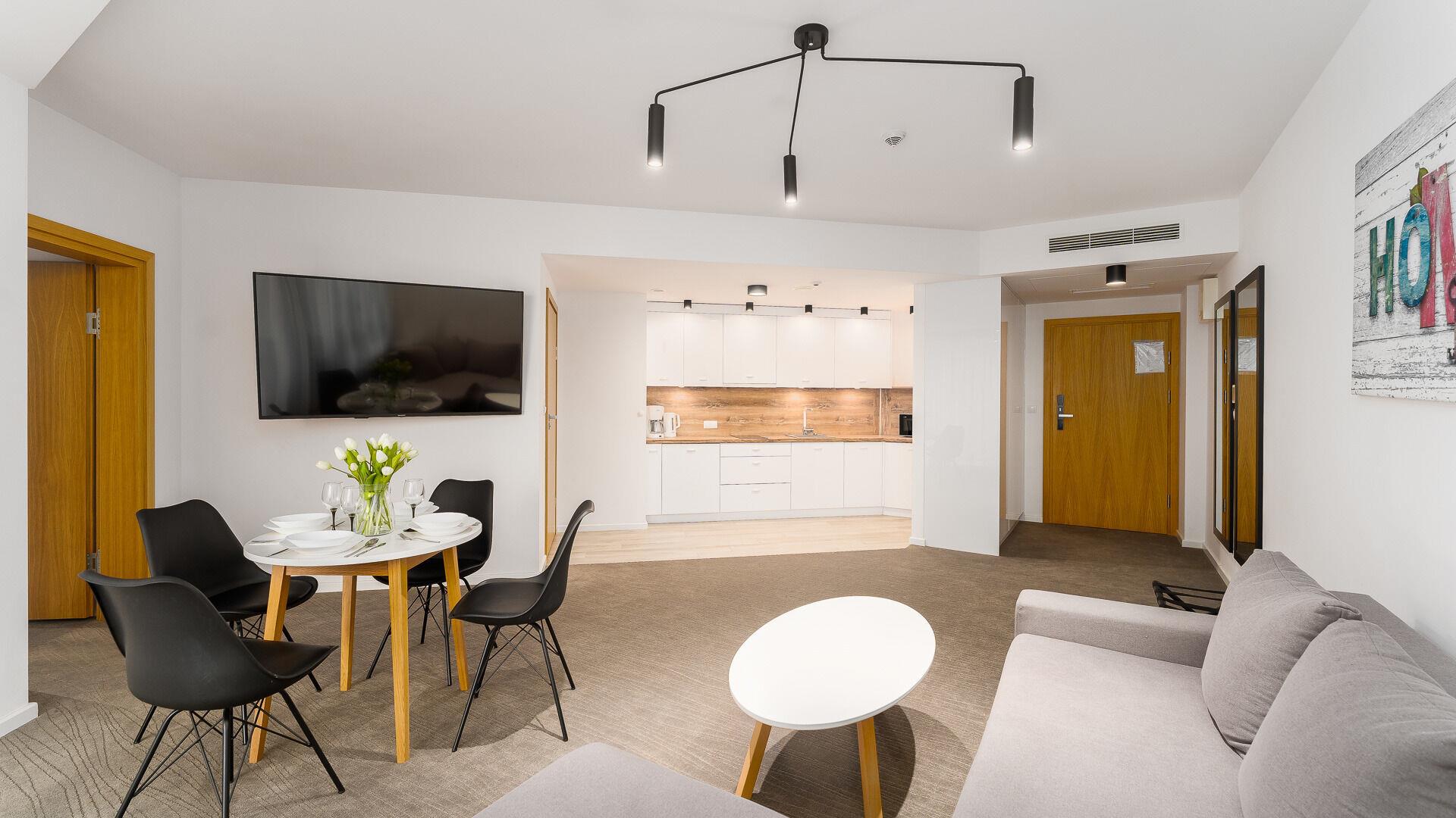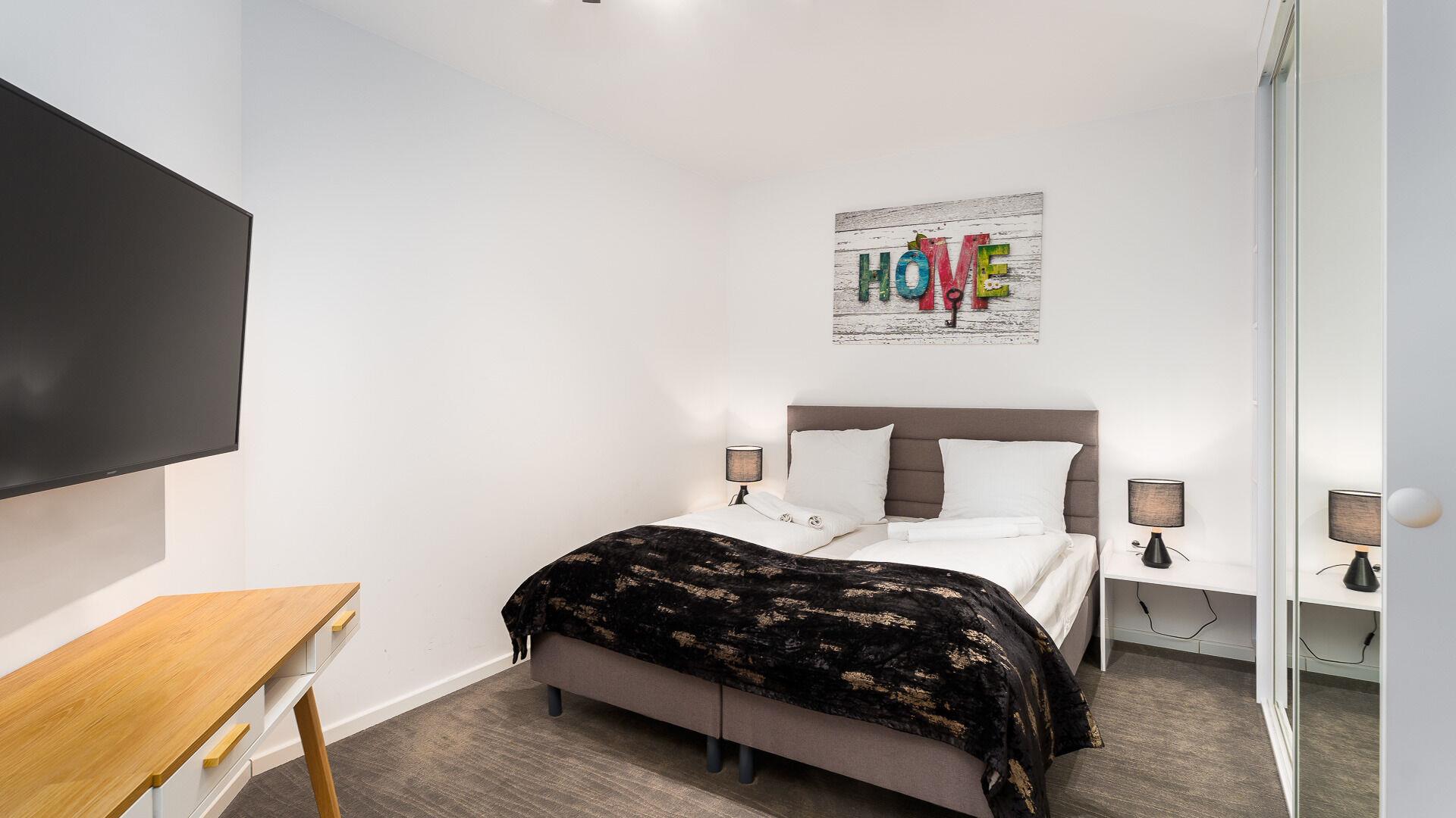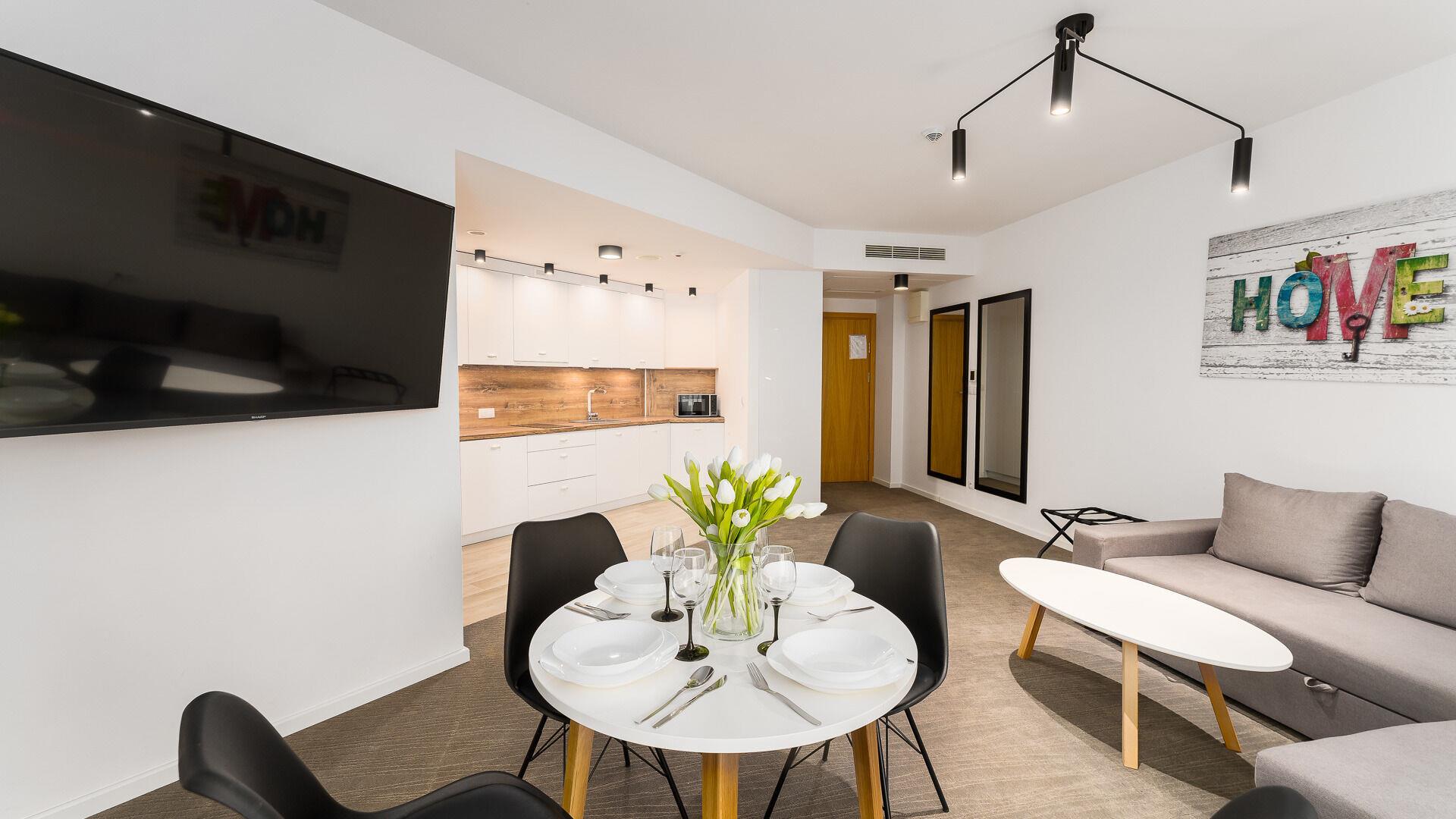 • Haustiere sind in der ausgewählten Wohnung erlaubt. Die Kosten für den Aufenthalt mit einem Haustier betragen 40 PLN pro Tag.
