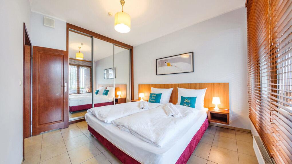 • Haustiere sind in der ausgewählten Wohnung erlaubt. Die Kosten für den Aufenthalt mit einem Haustier betragen 40 PLN pro Tag.