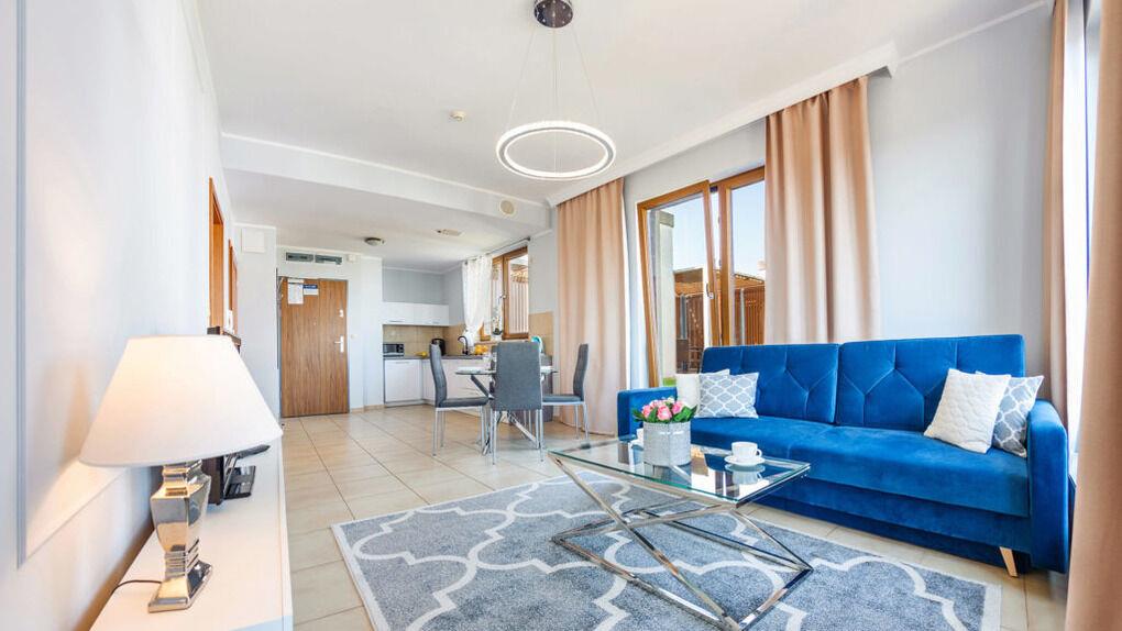 • Haustiere sind in der ausgewählten Wohnung erlaubt. Die Kosten für den Aufenthalt mit einem Haustier betragen 40 PLN pro Tag.