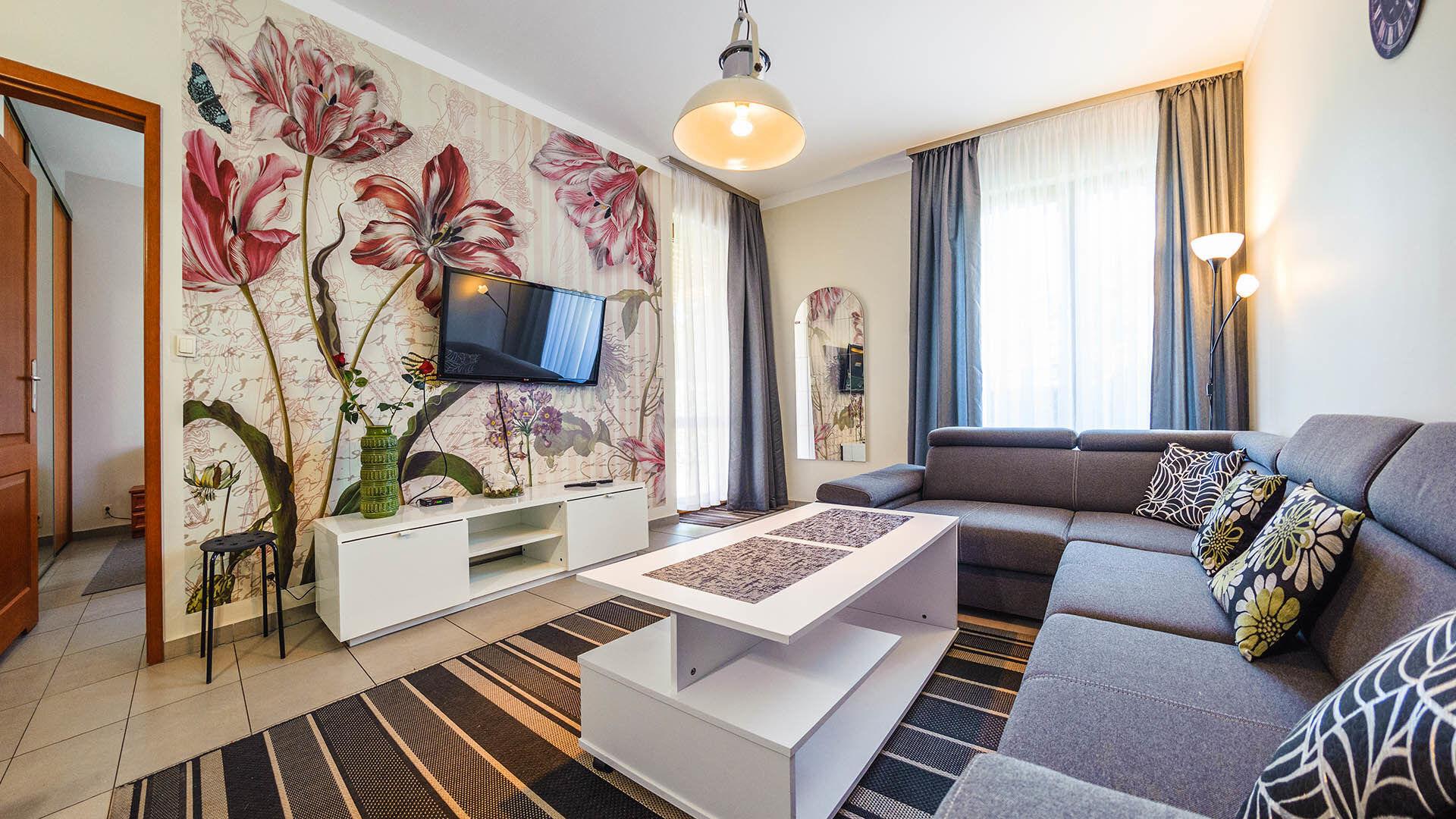 • Haustiere sind in der ausgewählten Wohnung erlaubt. Die Kosten für den Aufenthalt mit einem Haustier betragen 40 PLN pro Tag.