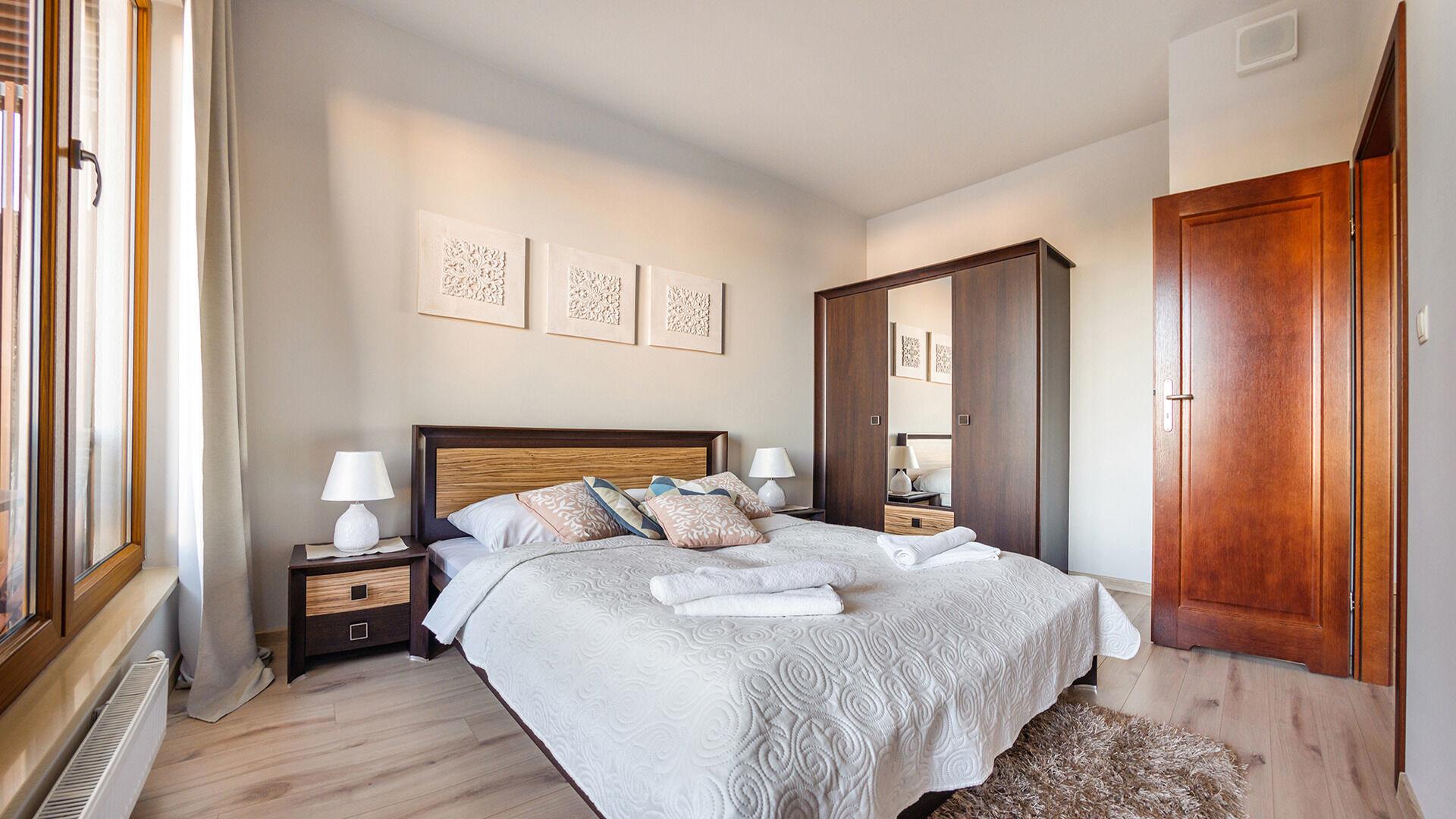 • Haustiere sind in der ausgewählten Wohnung erlaubt. Die Kosten für den Aufenthalt mit einem Haustier betragen 40 PLN pro Tag.