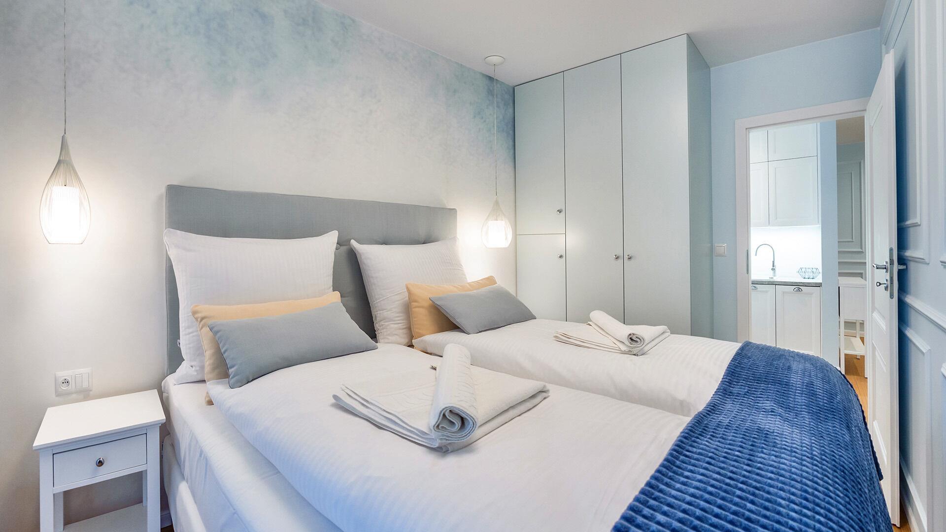 Die Apartments im Resorts Kolobrzeg liegen im ruhigen, westlichen Teil der Stadt, umgeben vom NATURA-2000-Park und nur wenige Minuten vom breiten Weststrand sowie einem Hundestrand entfernt. Die Lage bietet saubere Luft, direkten Kontakt zur Natur und Zugang zu Rad- und Spazierwegen. Die Apartments sind hochwertig ausgestattet und verfügen über voll ausgestattete Küchenzeilen sowie große Terrassen. Auf dem Gelände stehen nummerierte Außenparkplätze und Tiefgaragenplätze gegen Aufpreis zur Verfügung, zudem gibt es einen öffentlichen, kostenpflichtigen Parkplatz vor dem Gebäude. Gästen stehen ein täglich geöffneter Pool sowie eine Sauna zur Verfügung. Kolobrzeg bietet das ganze Jahr über zahlreiche Freizeit- und Kulturangebote sowie eine vielfältige Gastronomie.