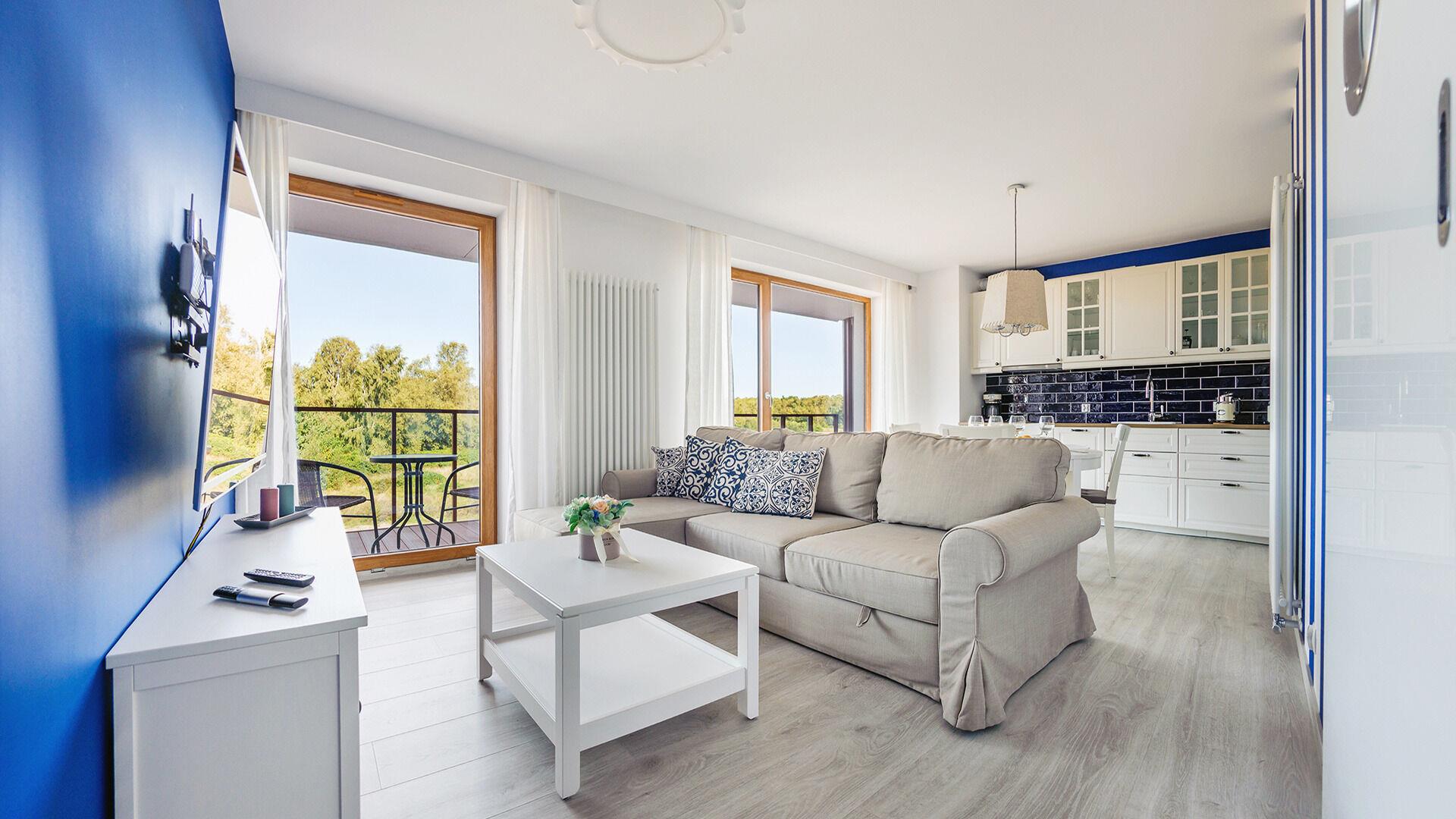 Die Apartments im Resorts Kolobrzeg liegen im ruhigen, westlichen Teil der Stadt, umgeben vom NATURA-2000-Park und nur wenige Minuten vom breiten Weststrand sowie einem Hundestrand entfernt. Die Lage bietet saubere Luft, direkten Kontakt zur Natur und Zugang zu Rad- und Spazierwegen. Die Apartments sind hochwertig ausgestattet und verfügen über voll ausgestattete Küchenzeilen sowie große Terrassen. Auf dem Gelände stehen nummerierte Außenparkplätze und Tiefgaragenplätze gegen Aufpreis zur Verfügung, zudem gibt es einen öffentlichen, kostenpflichtigen Parkplatz vor dem Gebäude. Gästen stehen ein täglich geöffneter Pool sowie eine Sauna zur Verfügung. Kolobrzeg bietet das ganze Jahr über zahlreiche Freizeit- und Kulturangebote sowie eine vielfältige Gastronomie.