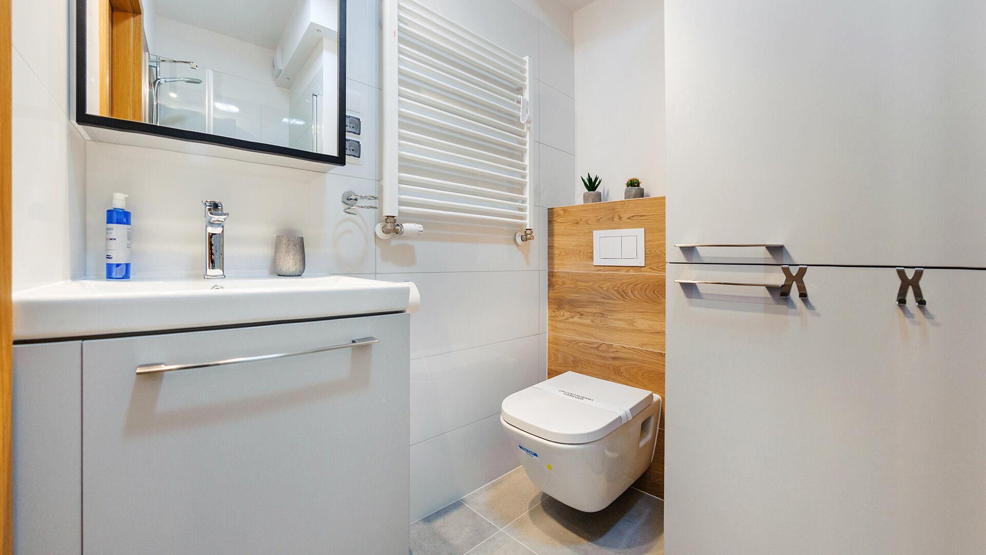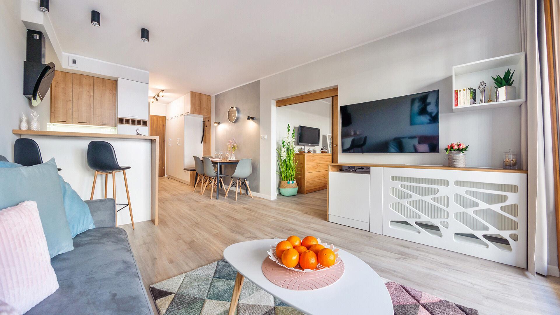 • Haustiere sind in der ausgewählten Wohnung erlaubt. Die Kosten für den Aufenthalt mit einem Haustier betragen 40 PLN pro Tag.